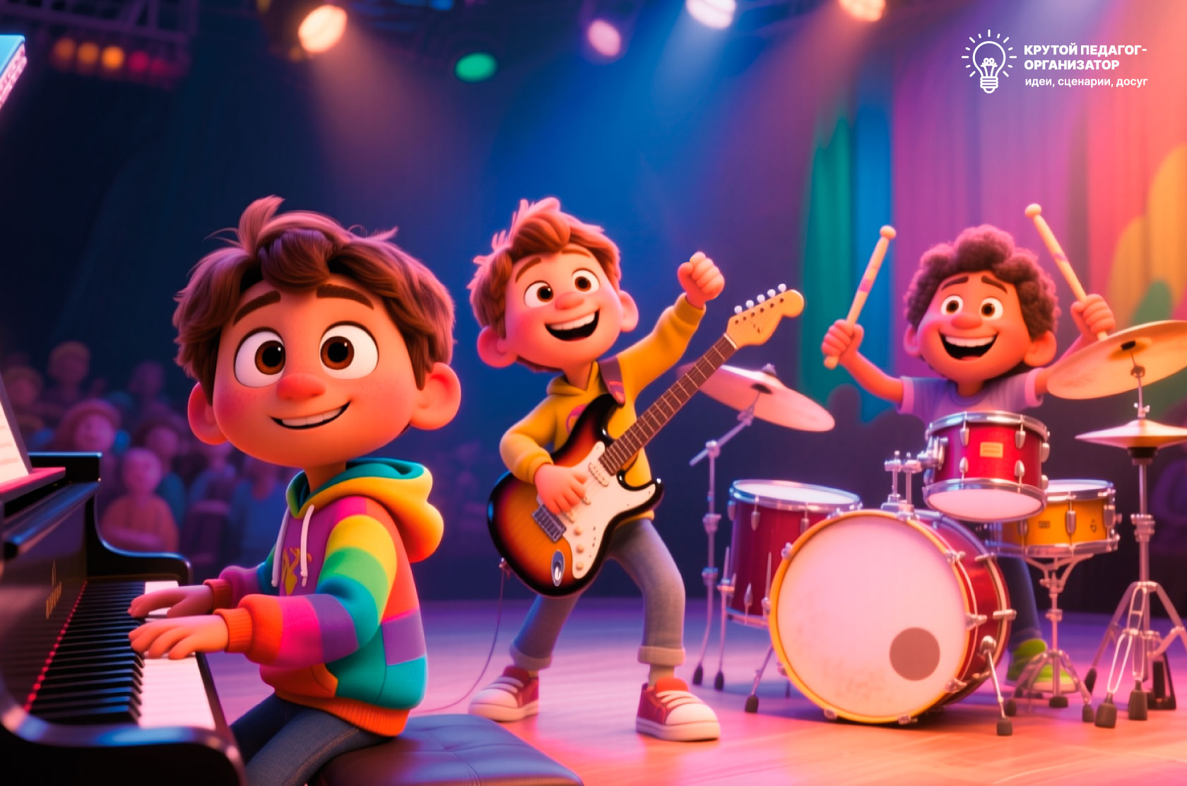 - Мастер-классы: Пригласить профессиональных музыкантов, которые покажут, как играть на гитаре, фортепиано или ударных. Это вдохновит детей на собственное творчество.