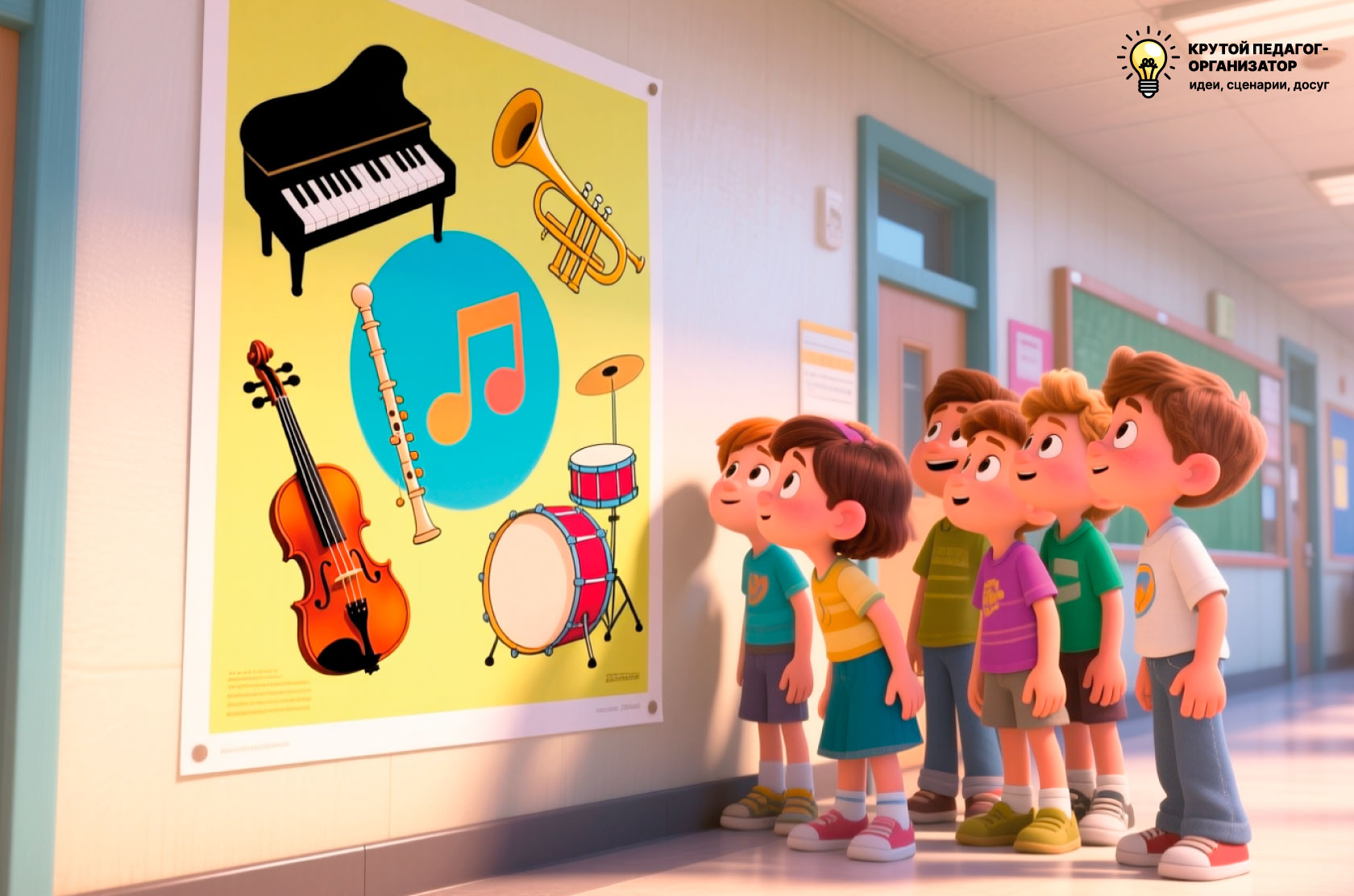 - Музыкальный квест: Дети выполняют задания на знание музыки: угадывают произведения по мелодиям, определяют инструменты по звучанию, разгадывают загадки о композиторах.