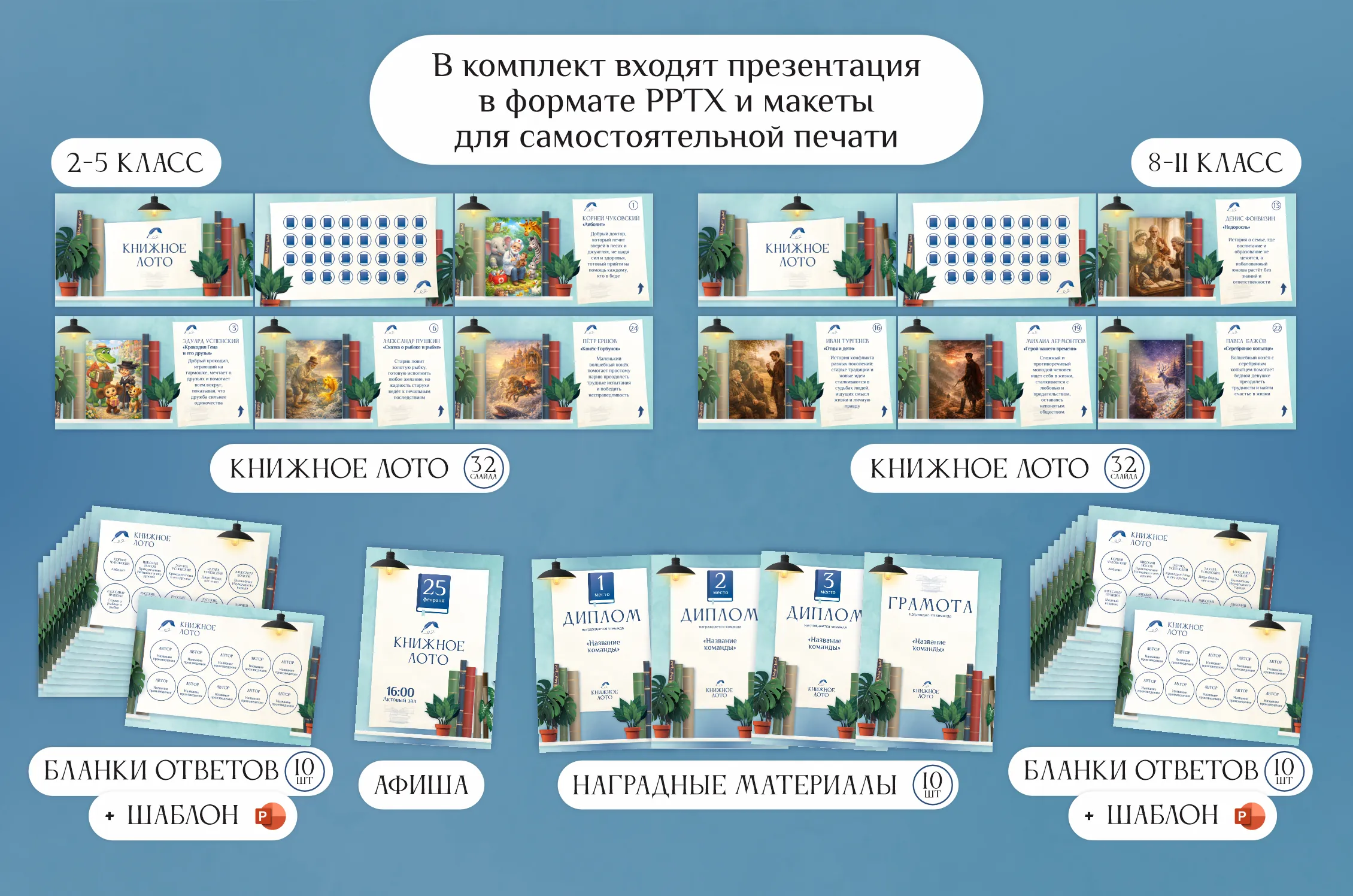 Ведущий: Добрый день, ребята! Сегодня мы проведём необычное занятие, посвящённое литературе и книгам, которые стали важной частью культуры и школьной программы. Мы вспомним произведения разных авторов — от сказок и приключений до серьёзной классики. Наша игра называется «Книжное лото», и она поможет не только познакомиться с известными книгами, но и проверить читательские знания.