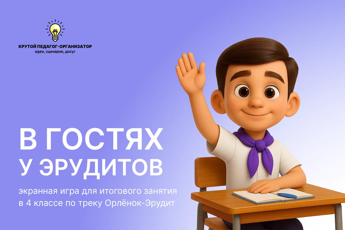 Ведущий 1: Дорогие ребята, уважаемые педагоги и наставники! Приветствую вас на итоговом событии трека «Орлёнок-Эрудит» и предлагаю сыграть в квиз «В гостях у Эрудитов».