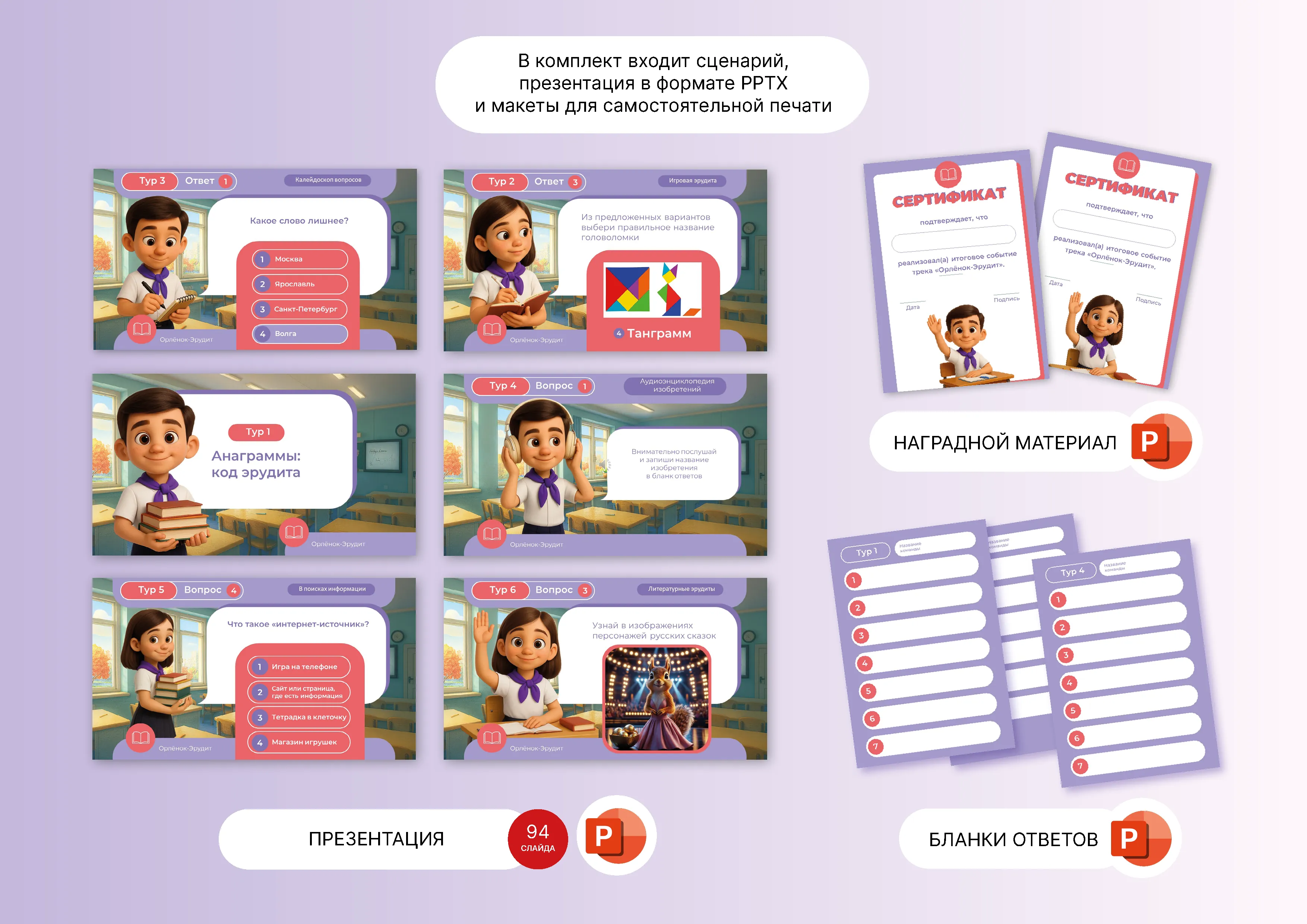 Действующие лица: учитель и наставники Орлят России (учащиеся 5-11 классов) – помогают педагогу в проведении экранной игры, подсчёте баллов.