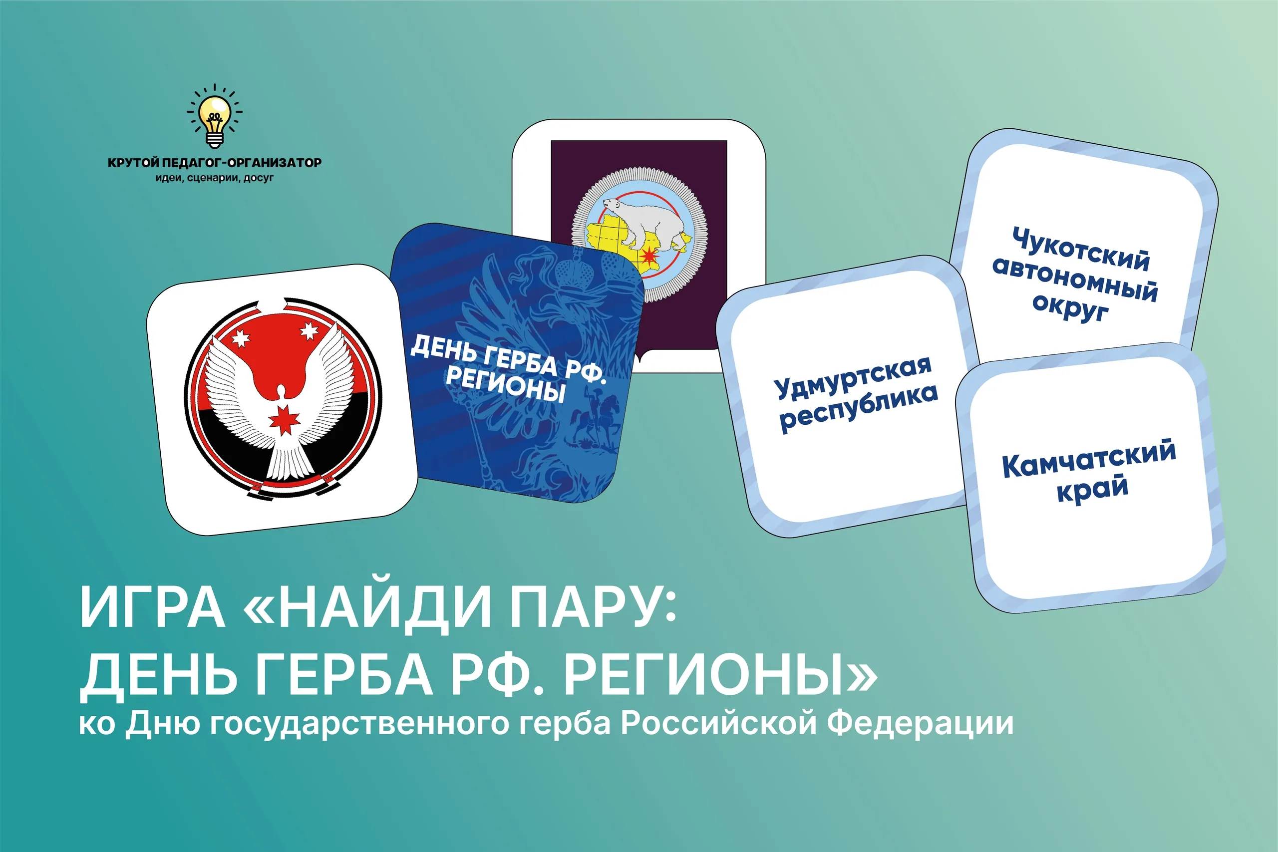 Игра «Найди пару: День герба РФ. Регионы» ко Дню государственного герба Российской Федерации — авторская разработка дизайнеров «Крутого педагога-организатора»!