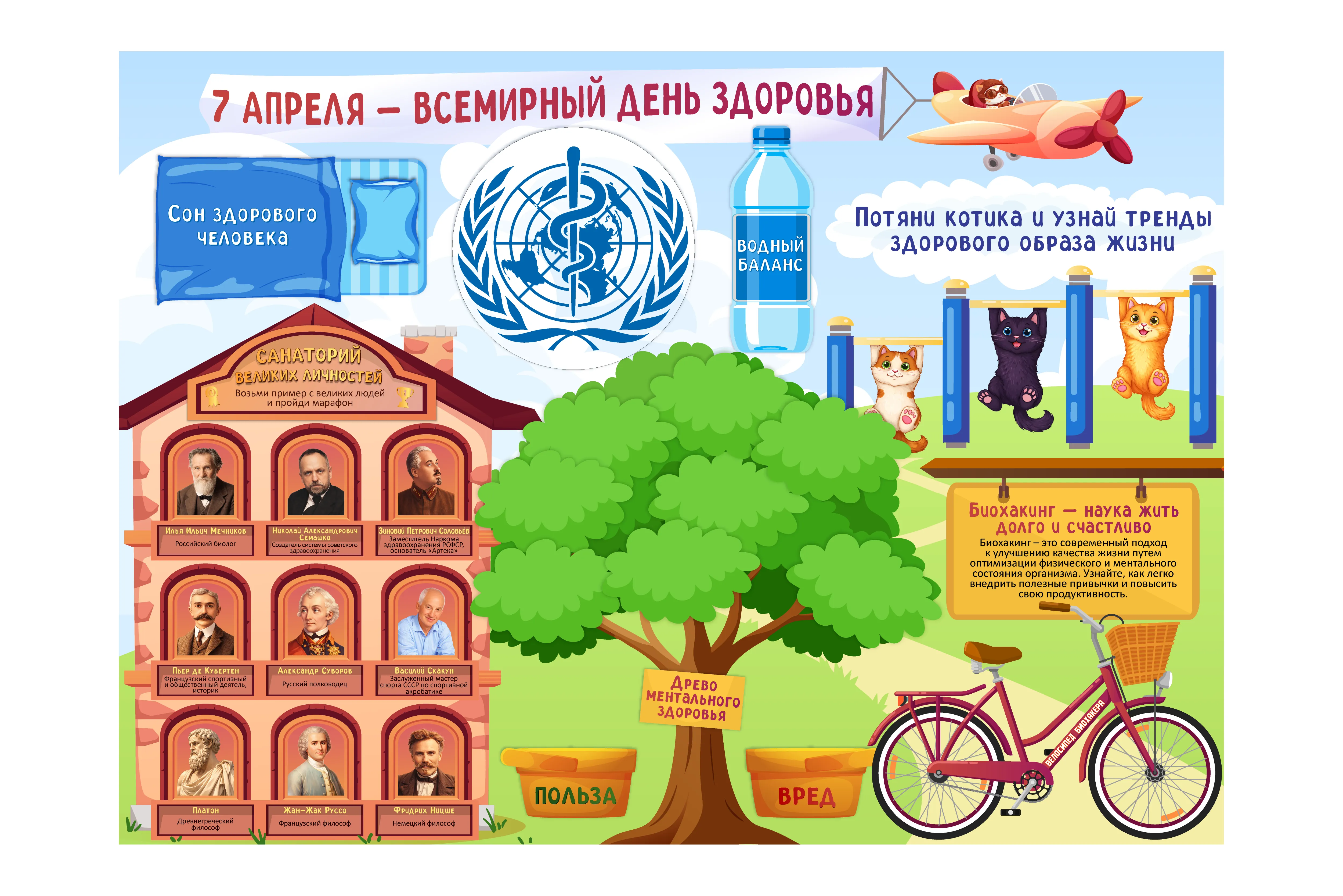 — история Всемирного дня здоровья и знакомство с деятельностью ВОЗ;