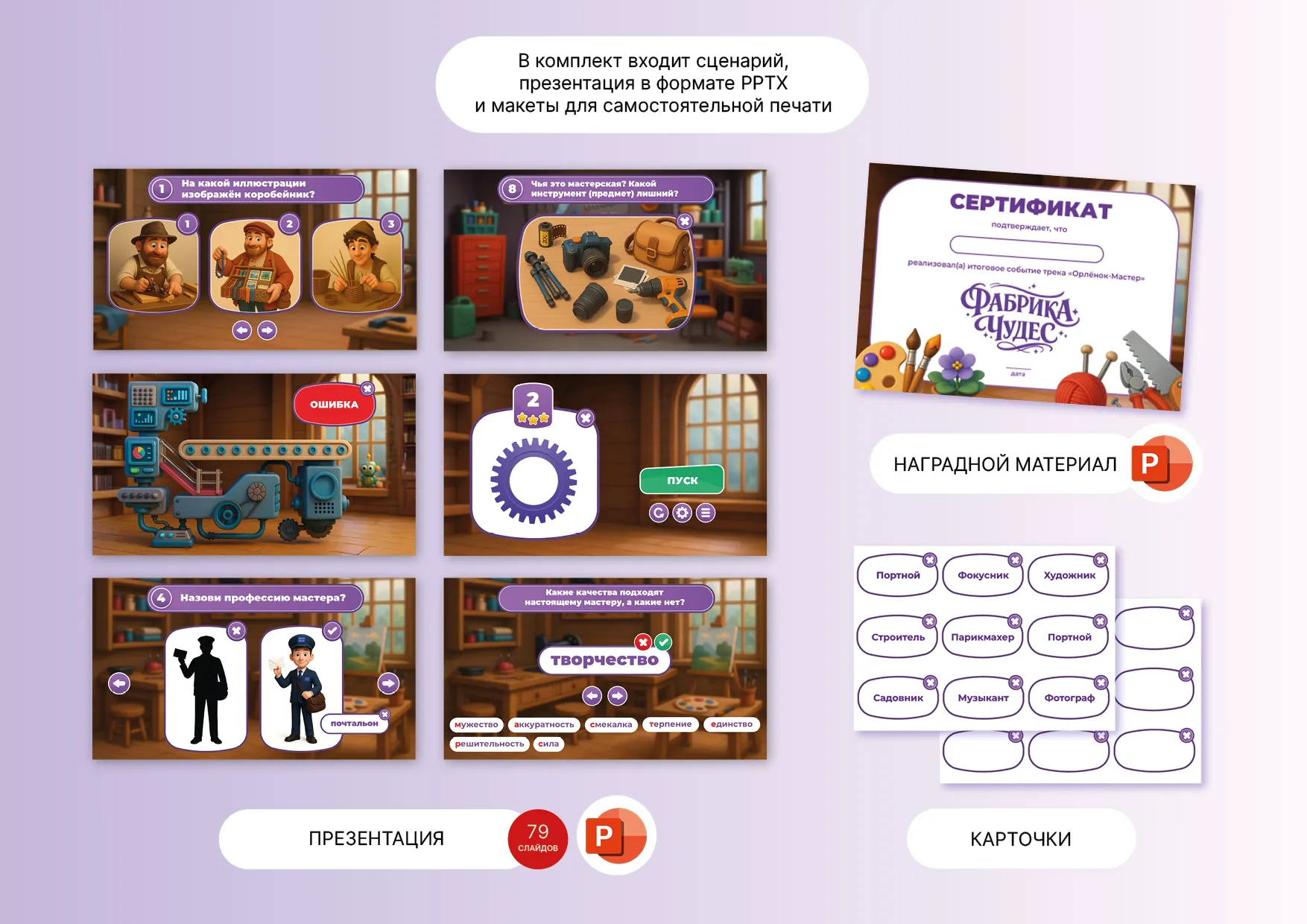 рады приветствовать вас на итоговом занятии трека «Орлёнок-мастер»! За время обучения каждый из вас прикоснулся к миру творчества, научился создавать что-то новое своими руками. И сегодня мы открываем нашу общую «Фабрику чудес мастеров»!