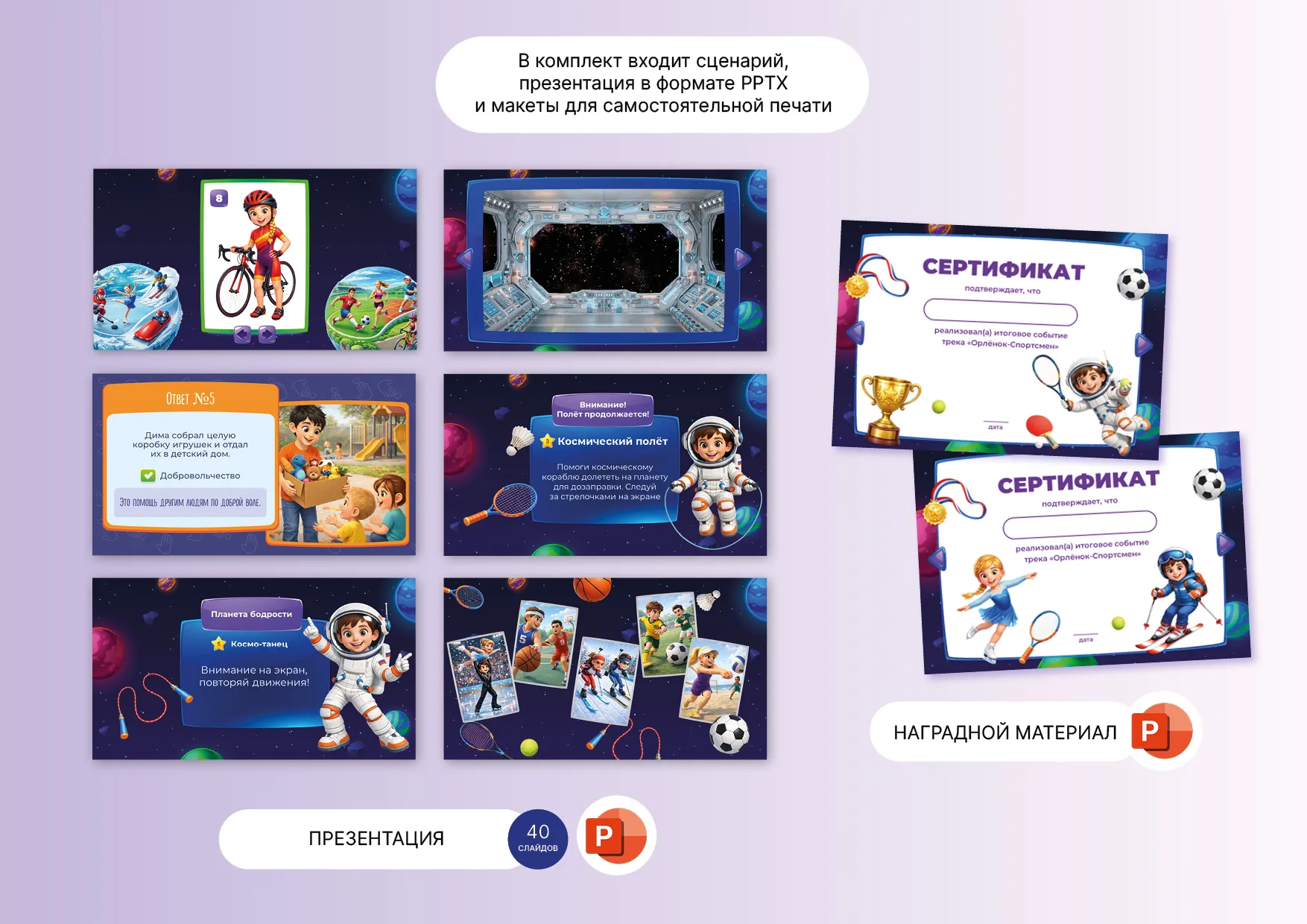 Ведущий: На этом миссия космического корабля «Орлёнок-Чемпион» завершена! До новых спортивных подвигов! Курс — на новые знания и победы!