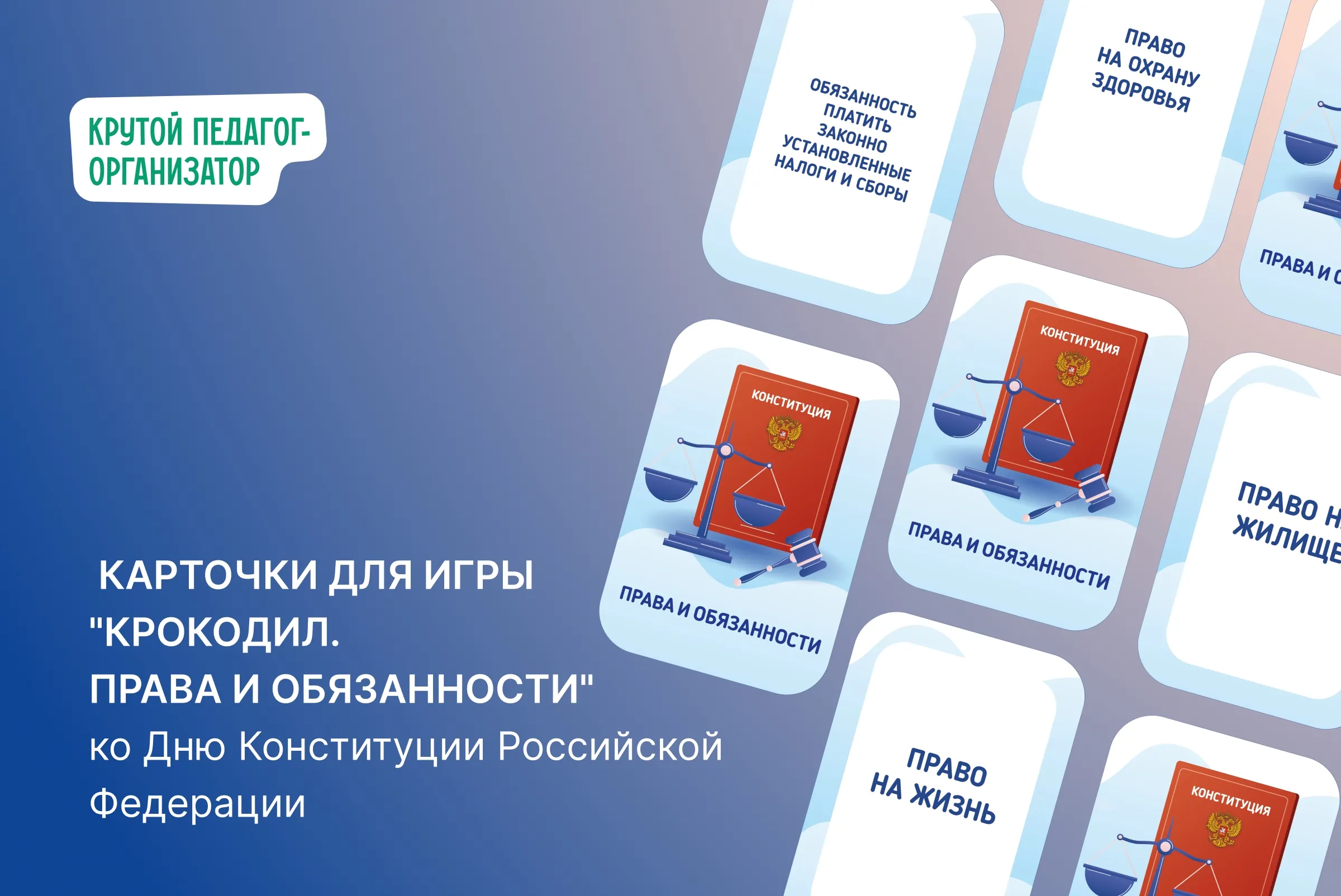 Карточки для игры «Крокодил. Права и обязанности» ко Дню Конституции Российской Федерации — авторская разработка дизайнеров «Крутого педагога-организатора»!