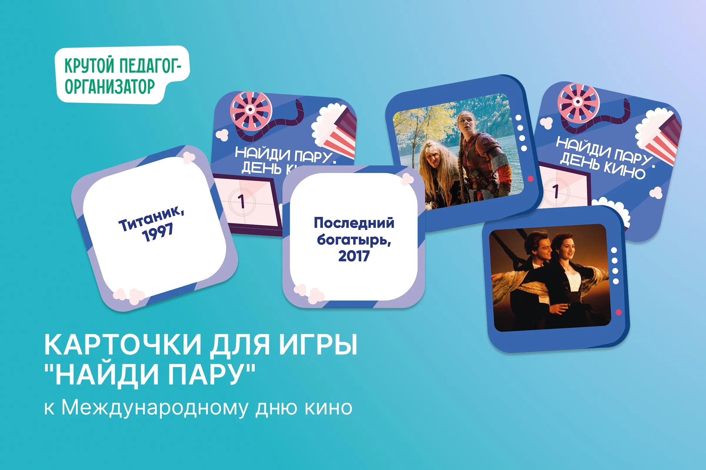 🎬 Карточки для игры «Найди пару» к Международному дню кино - авторская разработка дизайнеров «Крутого педагога-организатора»!