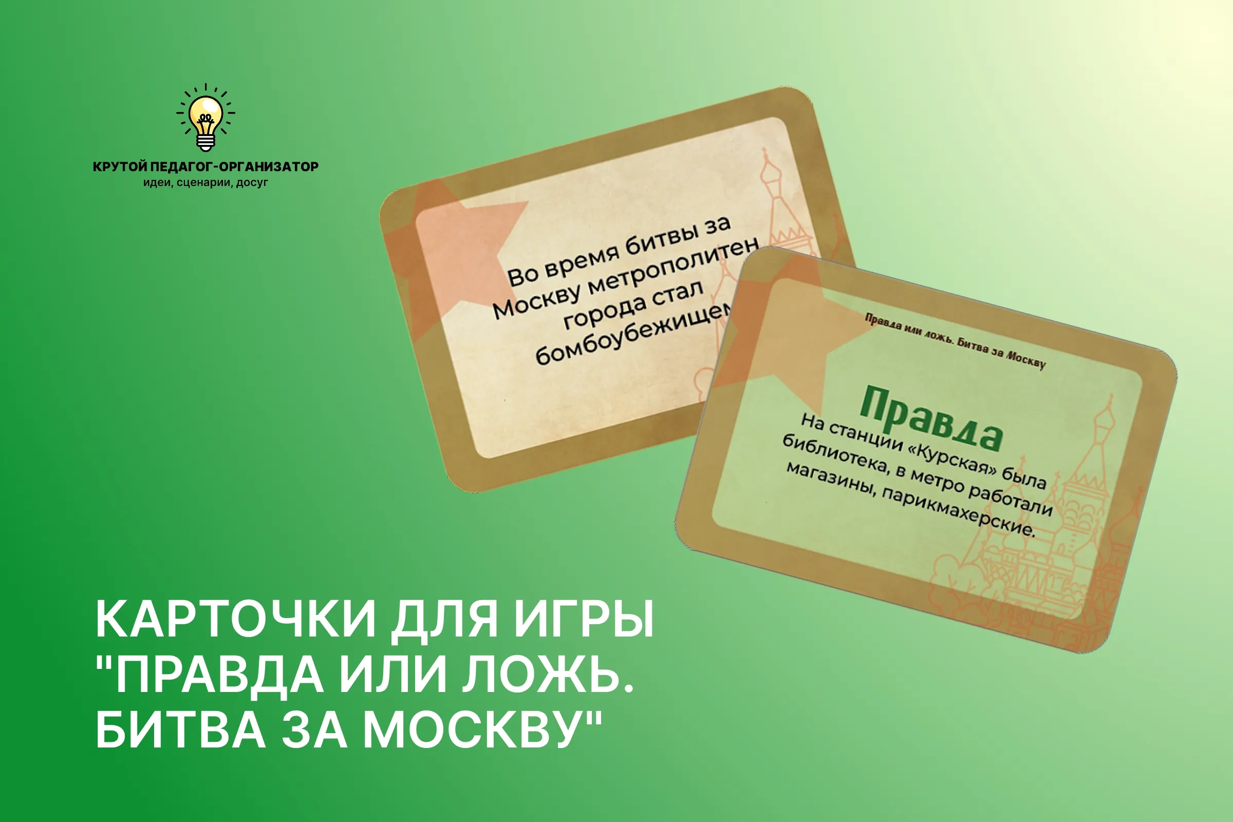 Карточки для игры «Правда или ложь. Битва за Москву» — авторская разработка дизайнеров «Крутого педагога-организатора»!