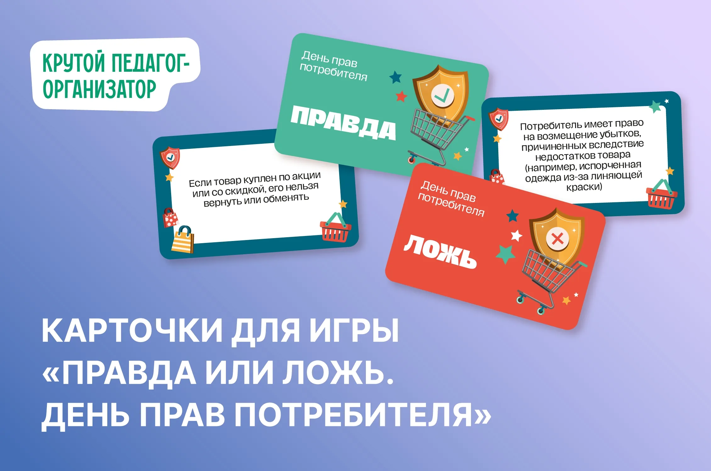 🛒 Карточки для игры «Правда или ложь. День прав потребителя» — авторская разработка дизайнеров «Крутого педагога-организатора»!