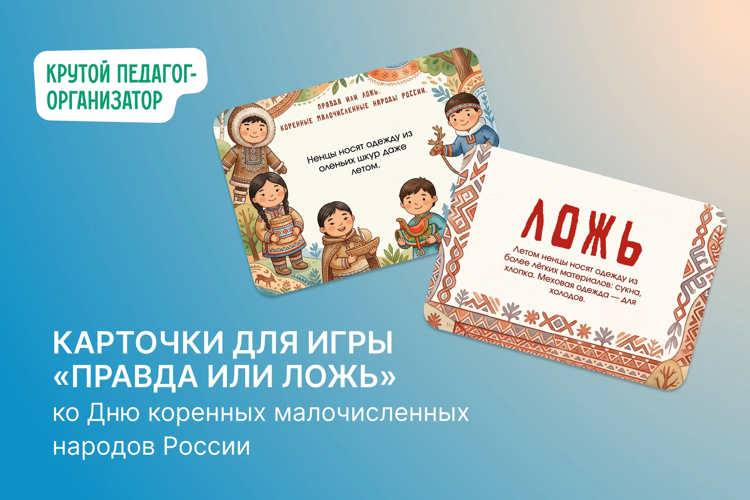Карточки для игры «Правда или ложь» ко Дню коренных малочисленных народов России — авторская разработка дизайнеров «Крутого педагога-организатора»!