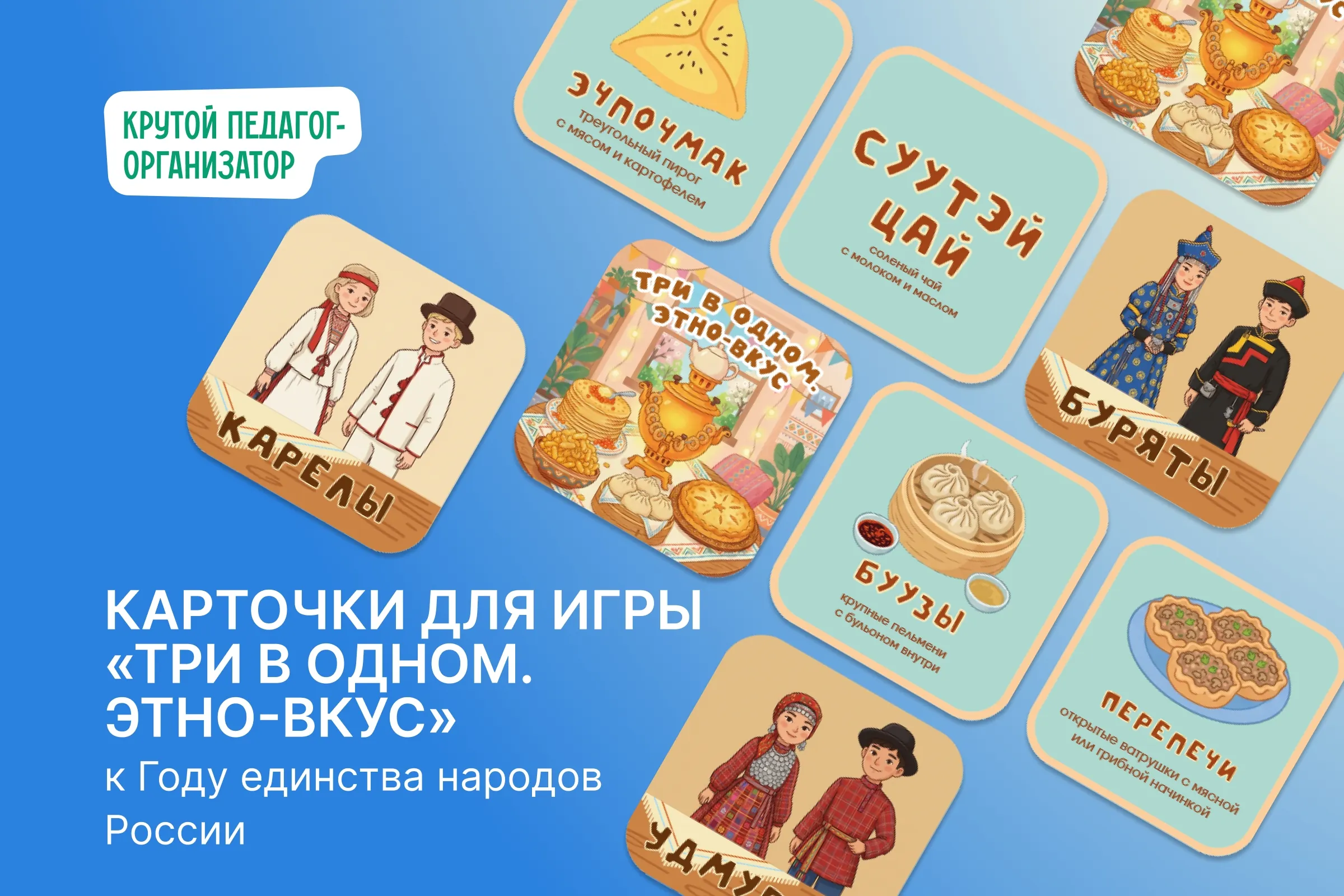Карточки для игры «Три в одном. Этно-вкус» — авторская разработка дизайнеров «Крутого педагога-организатора»!