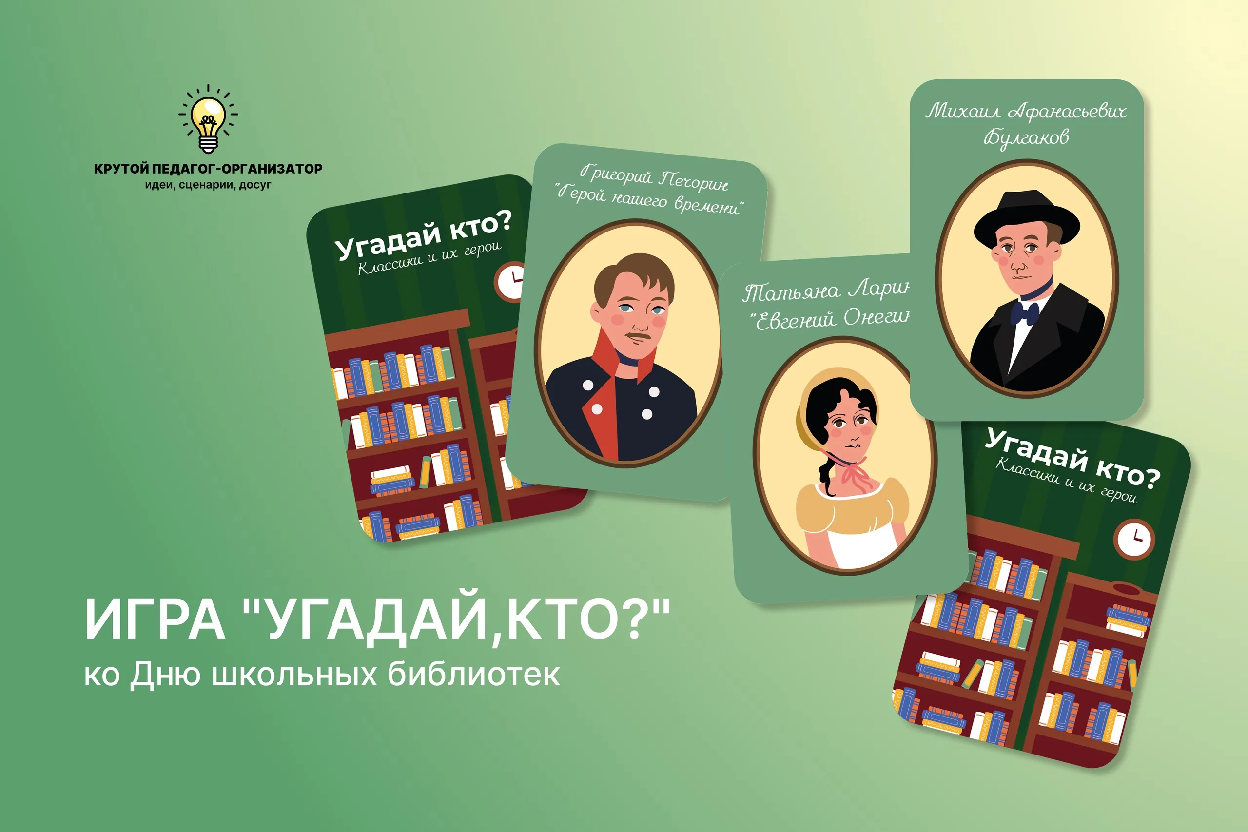 📚 Карточки для игры «Угадай кто? Классики и их герои» ко Дню школьных библиотек — авторская разработка дизайнеров «Крутого педагога-организатора»!