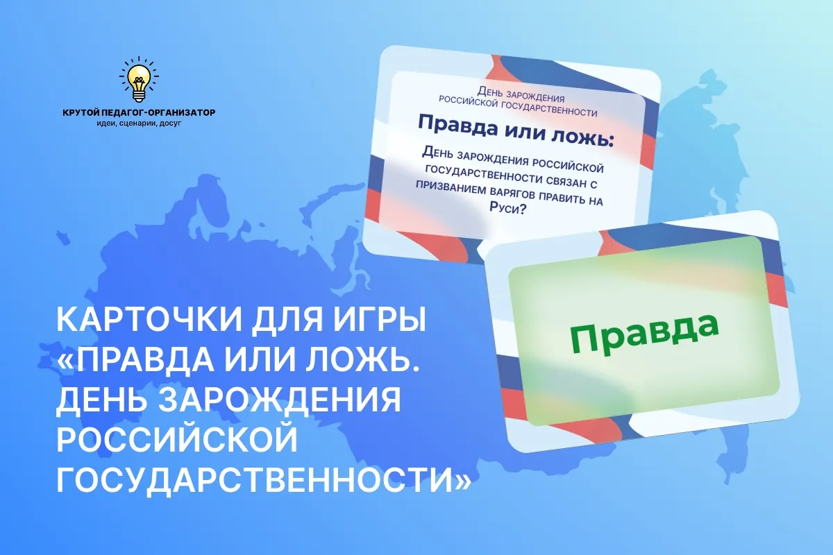 Карточки для настольной игры «Правда или ложь. День зарождения российской государственности» — авторская разработка дизайнеров «Крутого педагога-организатора»!