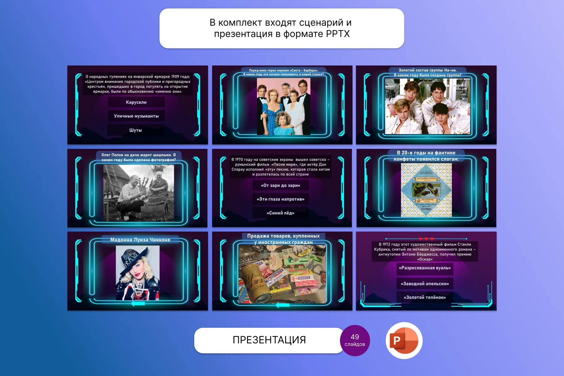 1 раунд: команды выбирают по очереди год (не зная какая там дата) и отвечают на выпавший вопрос. За каждый правильный ответ 100 баллов. Если команда ответила неправильно, то вторая команда может ответить, но получает 50 очков.