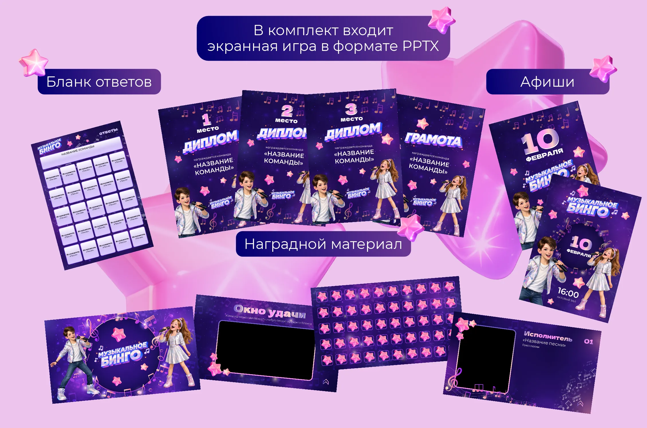 1. Каждой команде выдаётся бланк ответов с перечнем песен (у каждой команды они разные, в комплекте заготовка на 5 команд, а также есть пустой шаблон).