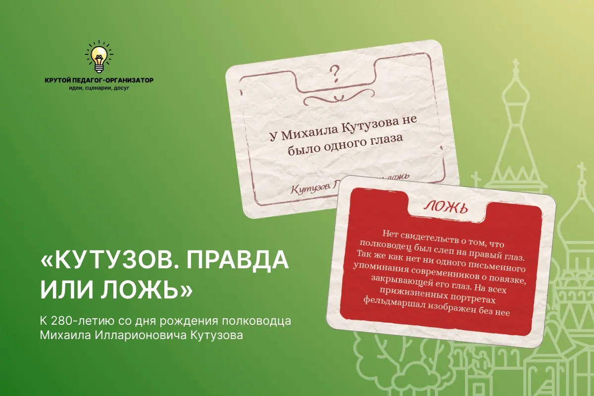 💡Настольная игра "Кутузов. Правда или ложь" - авторская разработка дизайнеров "Крутого педагога-организатора" к 280-летию со дня рождения великого полководца!
