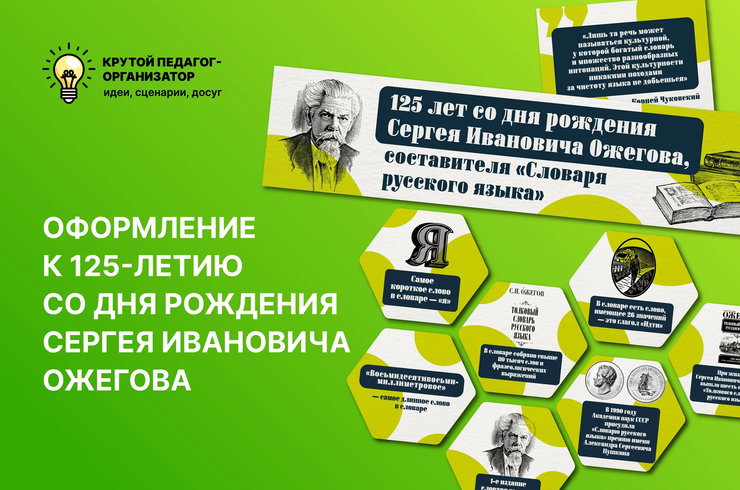 📖 Оформление к 125-летию со дня рождения Сергея Ивановича Ожегова — авторская разработка дизайнеров «Крутого педагога-организатора»!