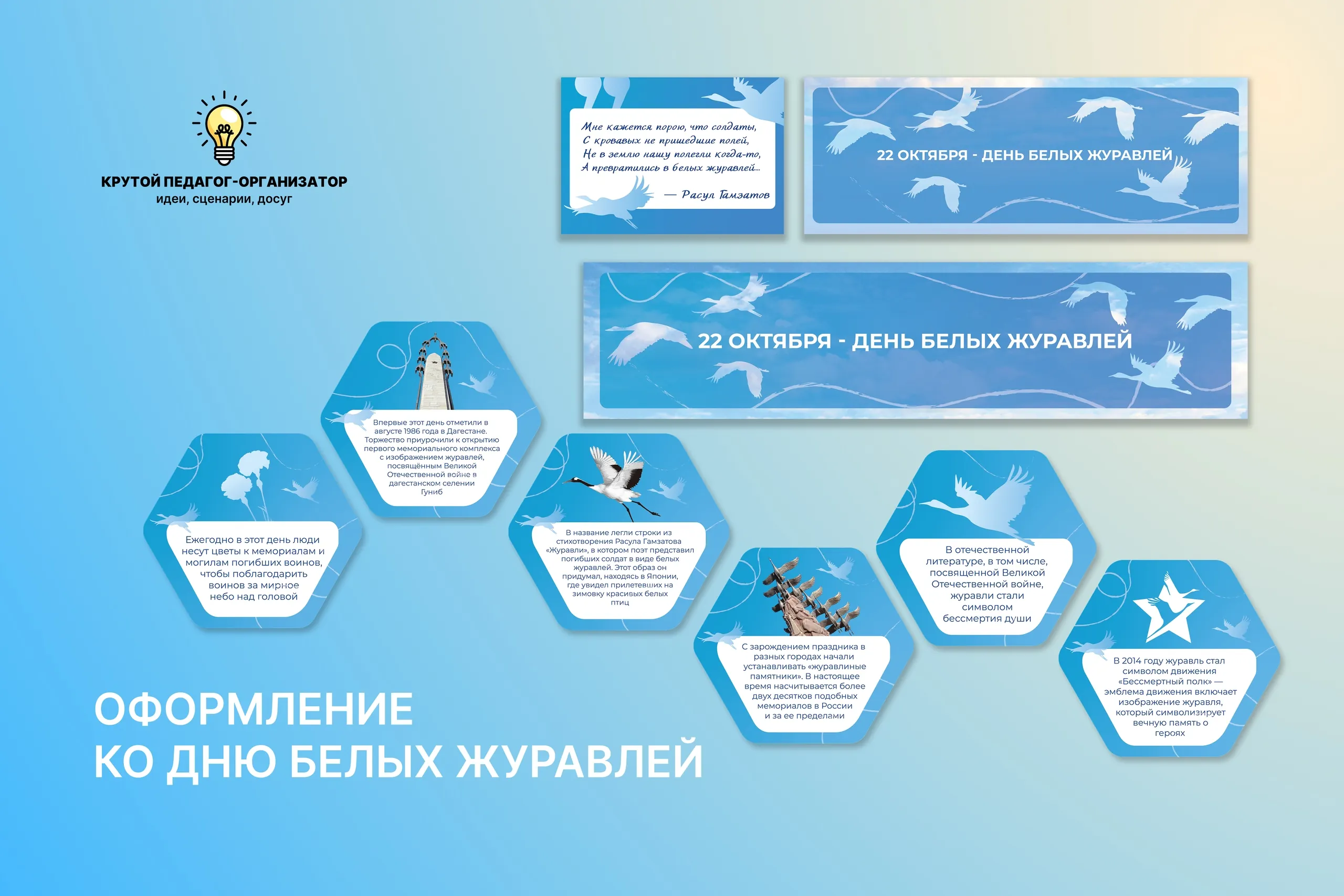 🕊 Оформление ко Дню белых журавлей — авторская разработка дизайнеров «Крутого педагога-организатора»!