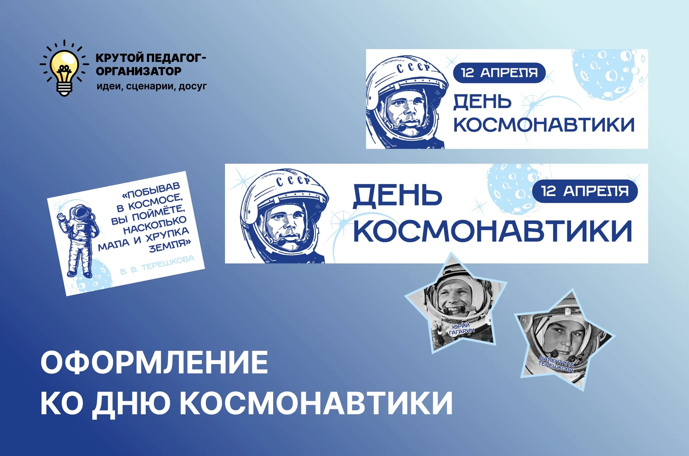 Оформление ко Дню космонавтики - авторская разработка дизайнеров "Крутого педагога-организатора"!