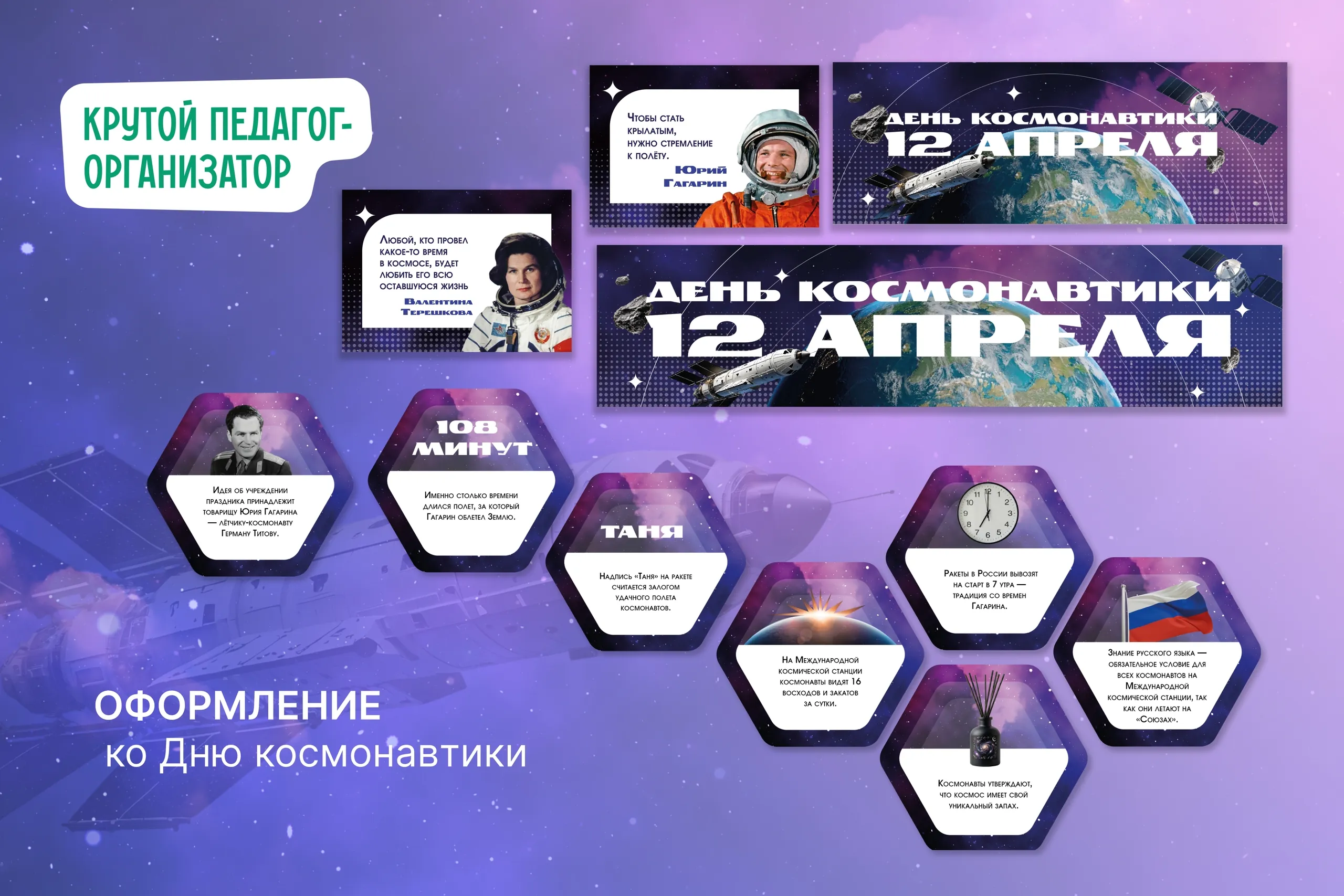 🚀 Оформление ко Дню космонавтики — авторская разработка дизайнеров «Крутого педагога-организатора»!