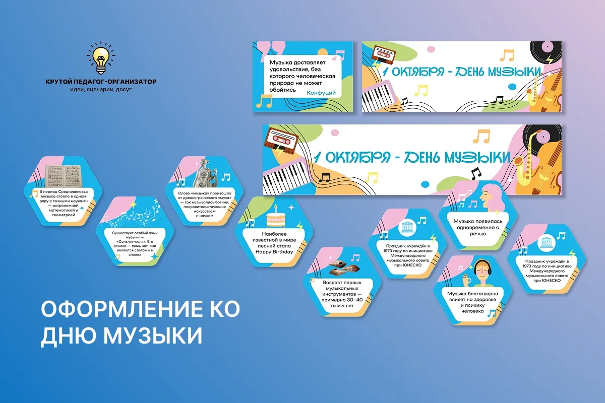 🎵 Оформление ко Дню музыки — авторская разработка дизайнеров «Крутого педагога-организатора»!