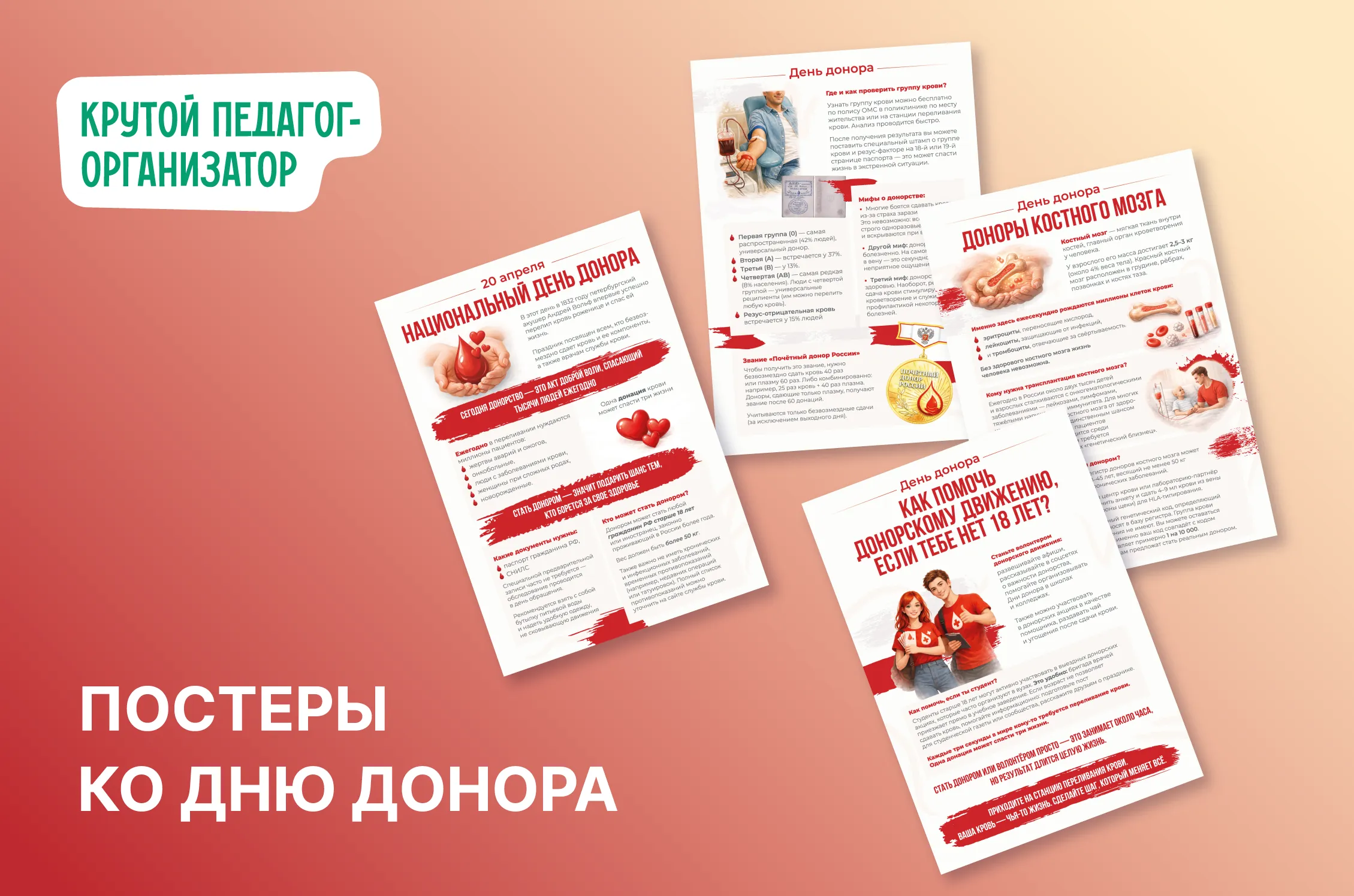 💉 Плакаты ко Дню донора — авторская разработка дизайнеров «Крутого педагога-организатора»!