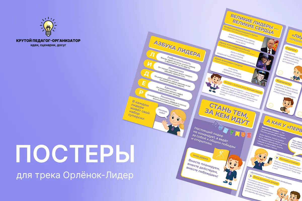 Комплект постеров для трека «Орлёнок-лидер» идеально подходит для оформления кабинета, проведения занятий и создания вдохновляющей среды для воспитания юных лидеров.