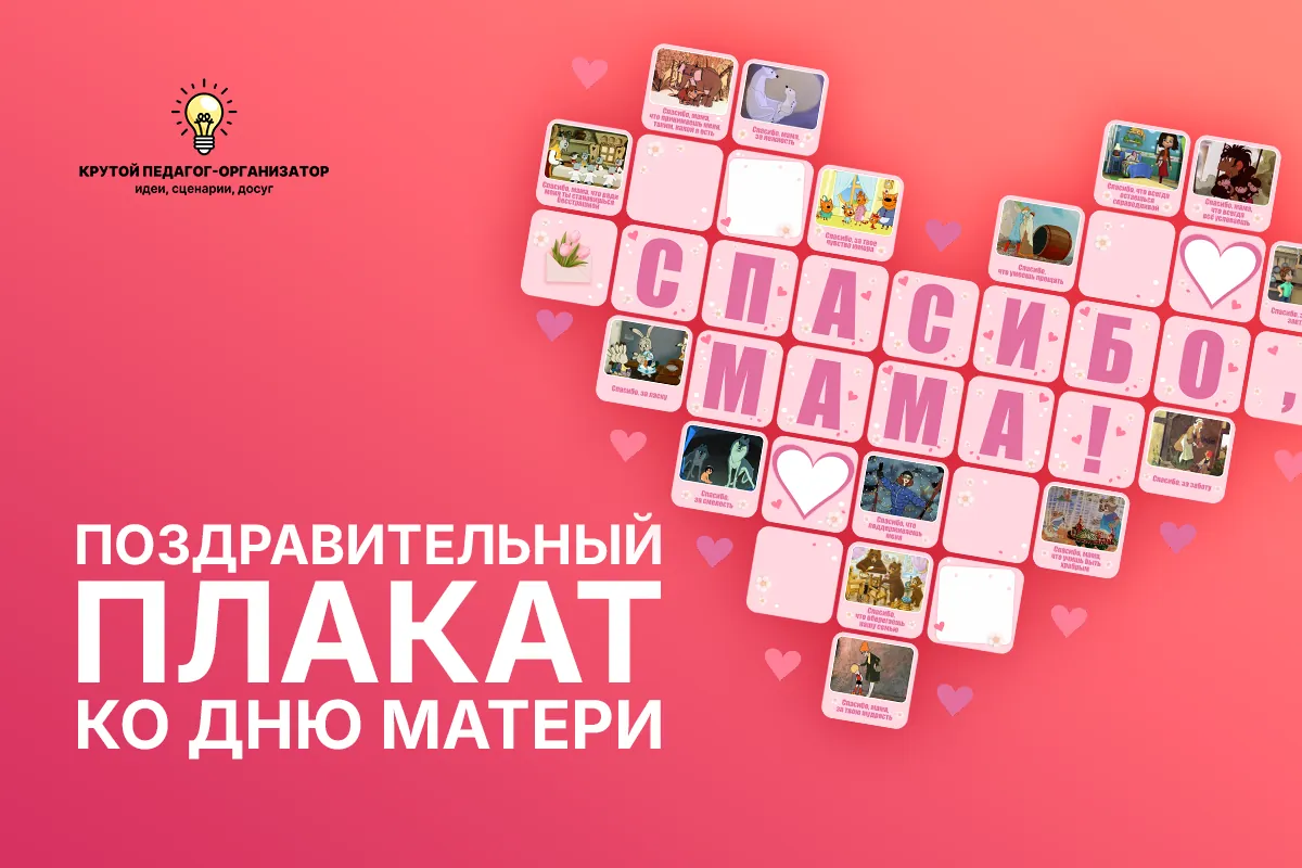💟 Поздравительный плакат ко Дню матери «СПАСИБО, МАМА!»