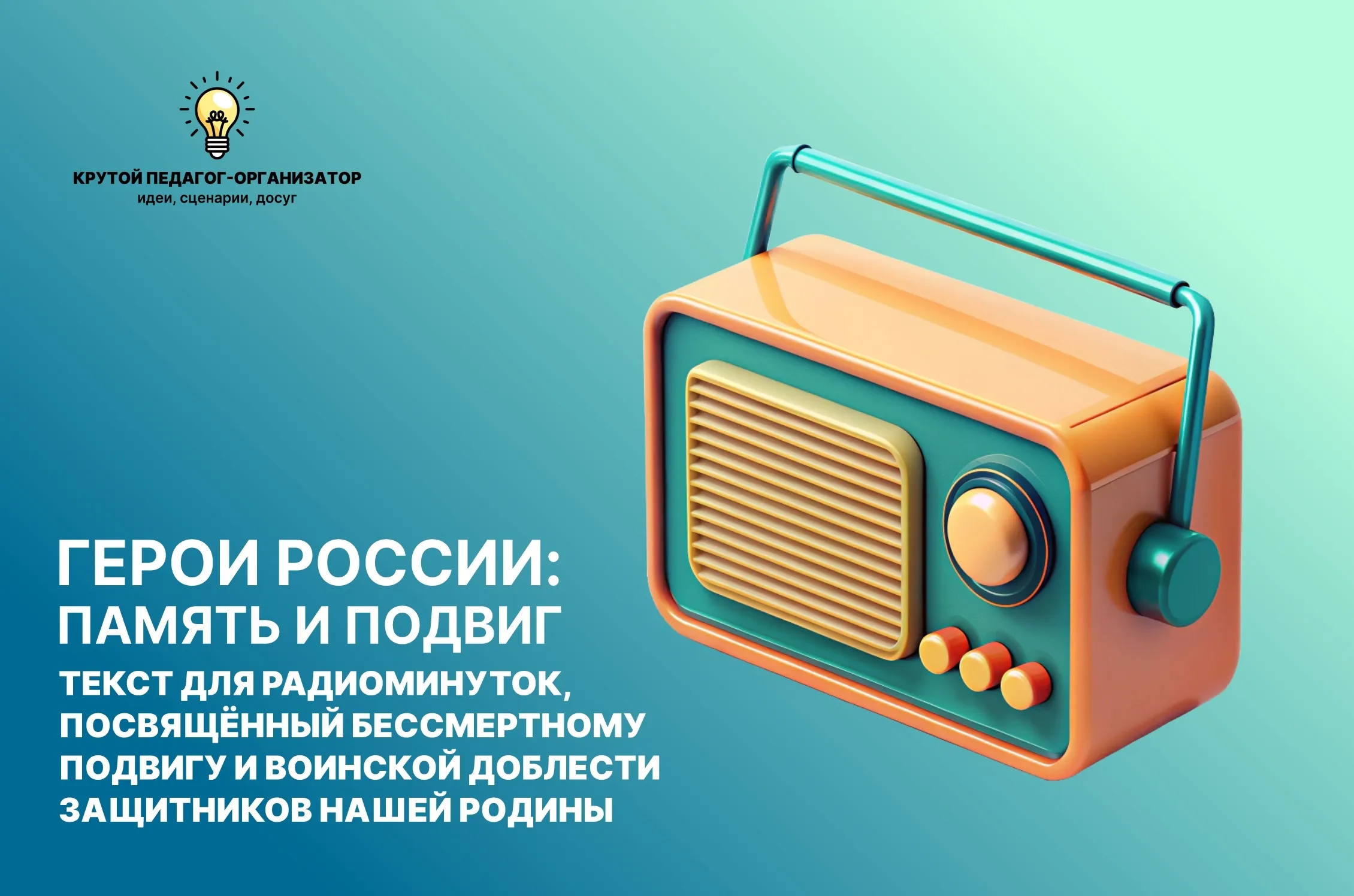 В жизни каждого из нас есть те, на кого мы равняемся, кем гордимся. А в жизни всей нашей страны есть целая плеяда таких людей – настоящих Героев. Сегодня мы обращаем свои мысли и сердца к ним. К тем, кто своими подвигами показал пример отваги, мужества и беззаветной любви к Отчизне. Эта радиоминутка, названная «Герои России: память и подвиг», посвящена бессмертному мужеству и воинской доблести всех, кто защищал и защищает нашу Родину.
