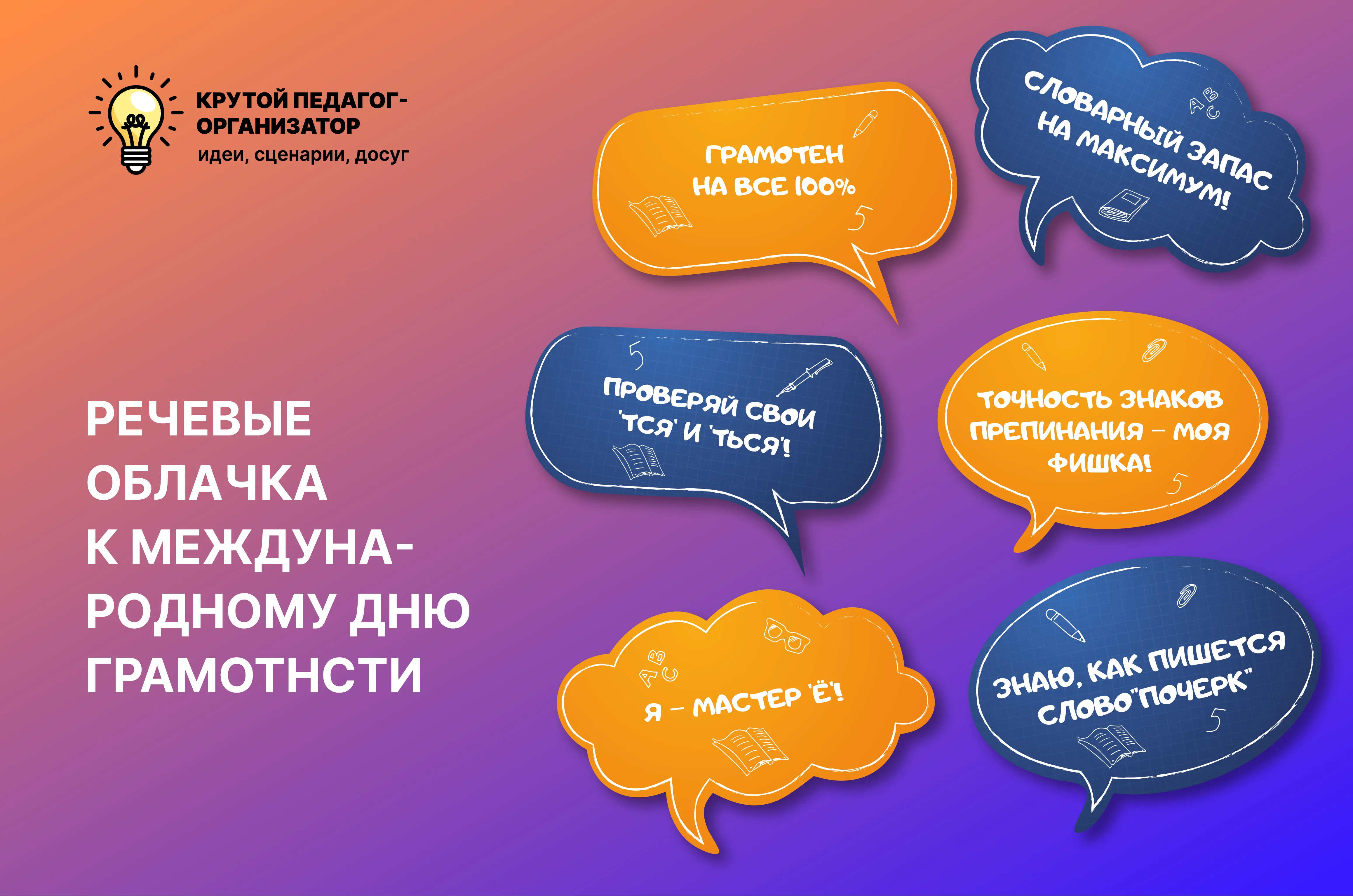 🤓А мы напоминаем об авторской разработке дизайнеров «Крутого педагога-организатора» - речевые облачка к Международному дню грамотности!