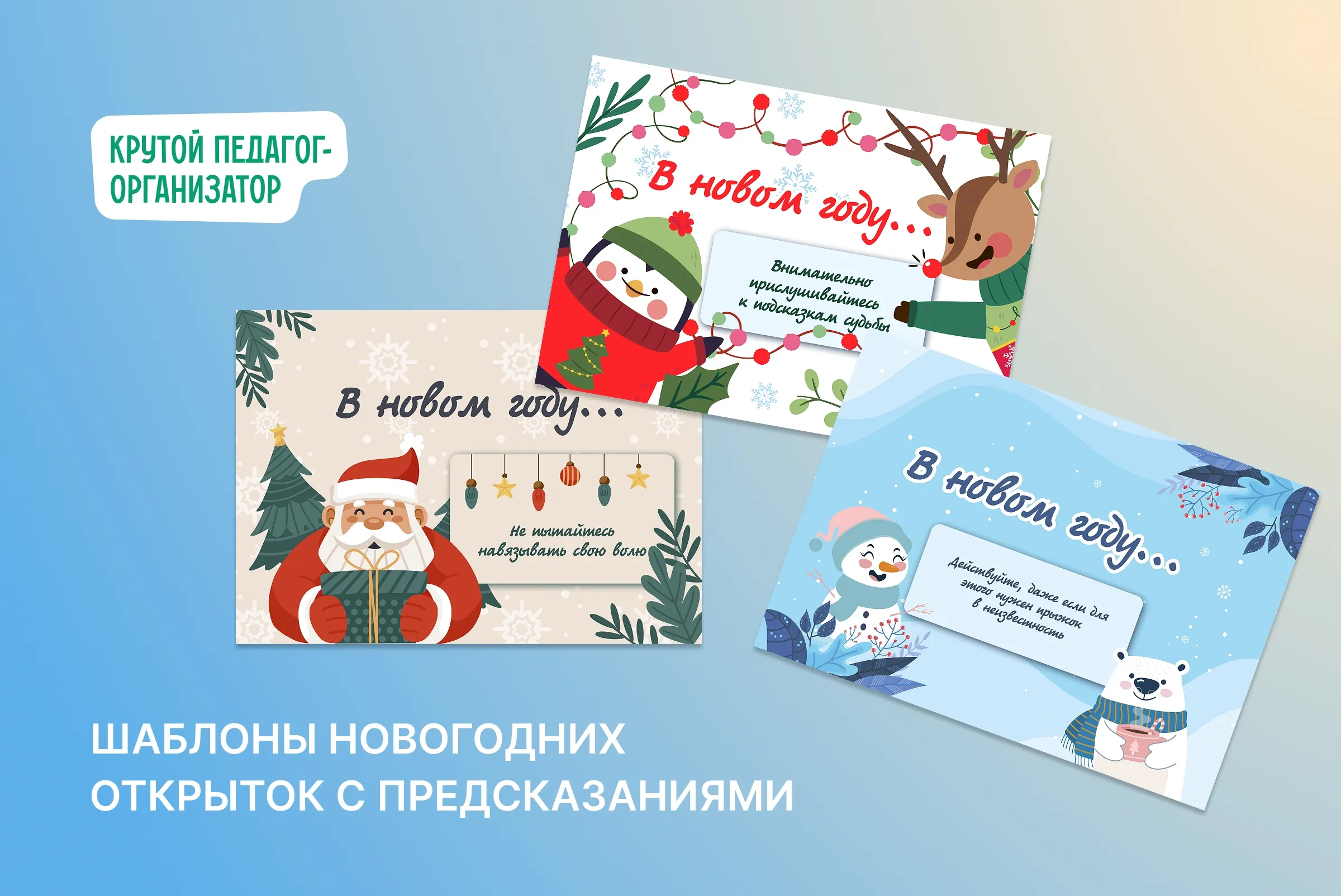 🔮 Шаблоны новогодних открыток с предсказаниями — авторская разработка дизайнеров «Крутого педагога-организатора»!