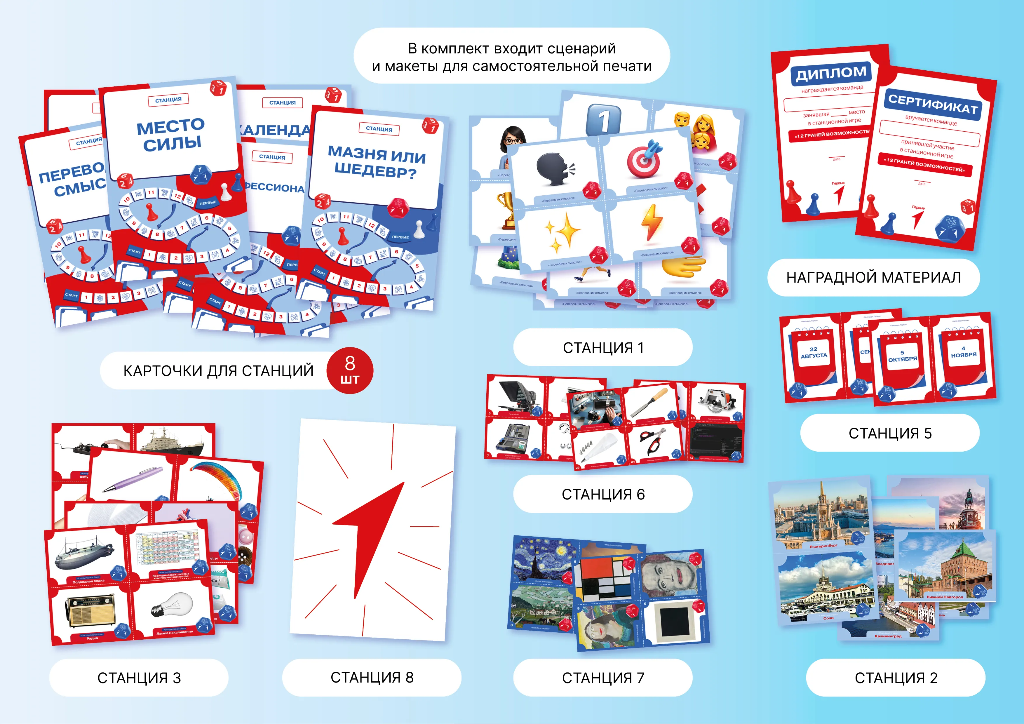 У нас будет 8 станций. На каждой из них вас встретит модератор и даст задание, которое объединяет сразу несколько направлений. Вы получите маршрутные листы – они укажут, в каком порядке двигаться. За каждое выполненное задание вы получите баллы. Чем выше балл, тем активнее ваша команда.