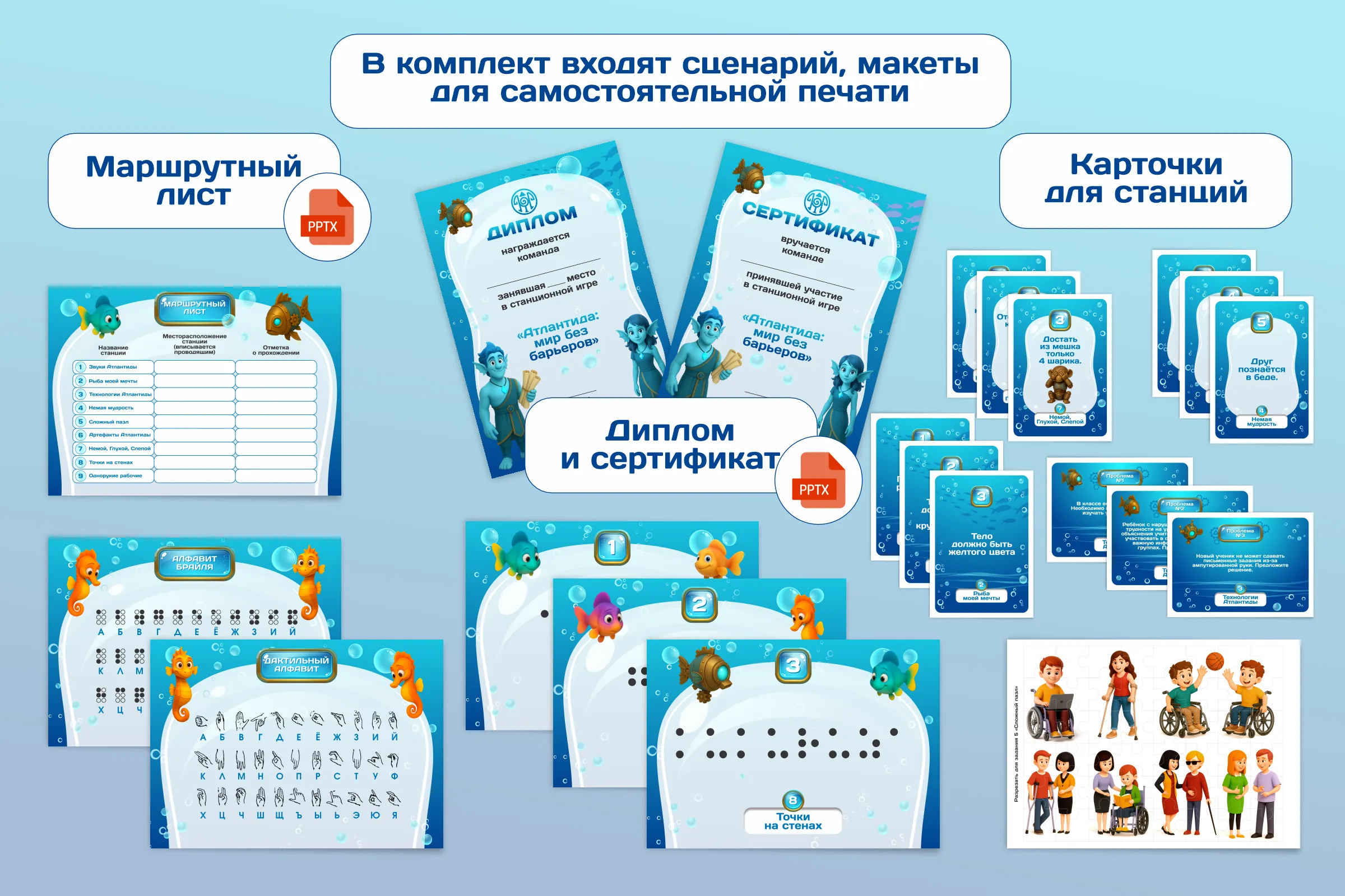Вы – команда исследователей, которые отправились на поиски Атлантиды. В ходе путешествия вам удалось найти подводный город. Чтобы изучить технологии атлантов, вам предстоит пройти испытания и задания, каждое из которых расскажет о том, как можно строить общество, где каждый важен и нужен.
