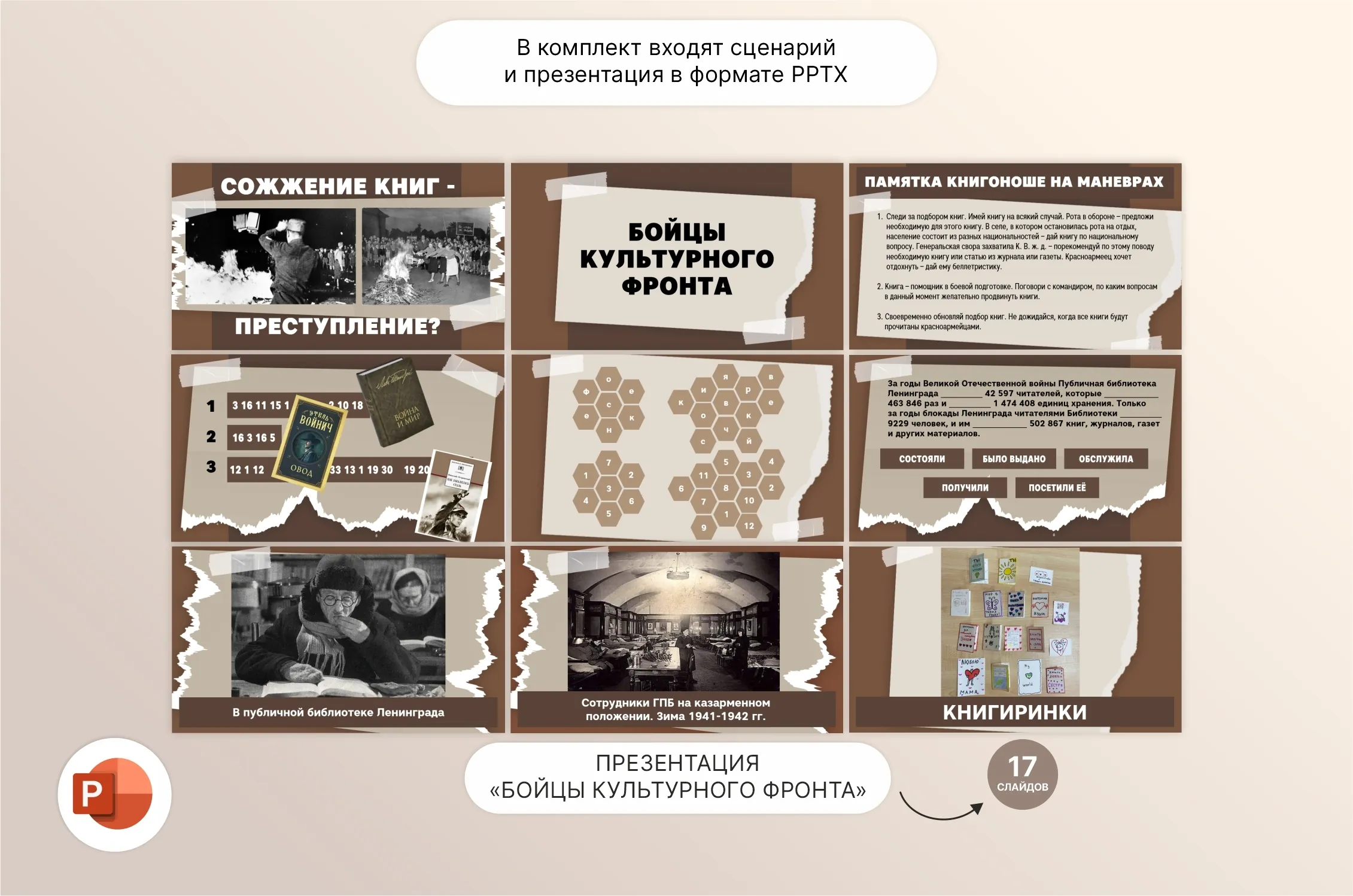 А теперь давайте перенесемся в другое время, в другую страну, в Советский Союз в годы Великой Отечественной войны, когда на нашу землю пришел враг, который тоже хотел уничтожить нашу культуру, знания, книги. И тогда на защиту этих ценностей встали наши библиотекари. Не все из них могли держать в руках оружие, но они стали настоящими бойцами, сражающимися на культурном фронте. (3 слайд) Сегодня мы поговорим о том, как они, рискуя жизнью, спасали книги, поддерживали дух солдат и мирных жителей, и как библиотеки стали островками надежды в годы войны.
