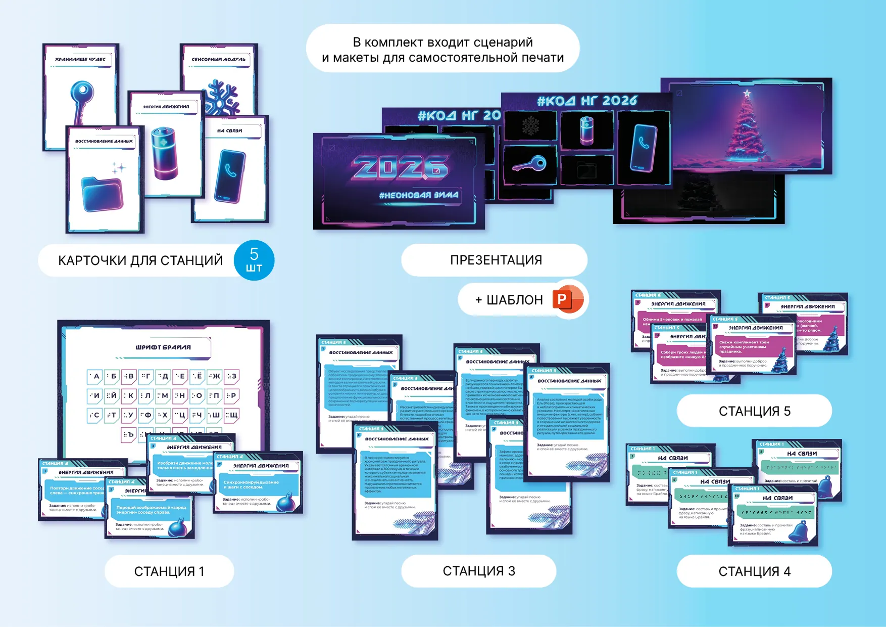 Ведущий: Перед вами расположены станции, где вы можете собрать ключи для энергетического кода добра. Все просто. Вы должны образовать команду и вместе пройти 5 испытаний. За каждое пройденное получите ключ. Приносите его вот сюда, к нашему столику (демонстрирует точку сбора ключей; это может быть диджейский стол или отдельный стол с волонтёром). А сейчас внимание на экран.