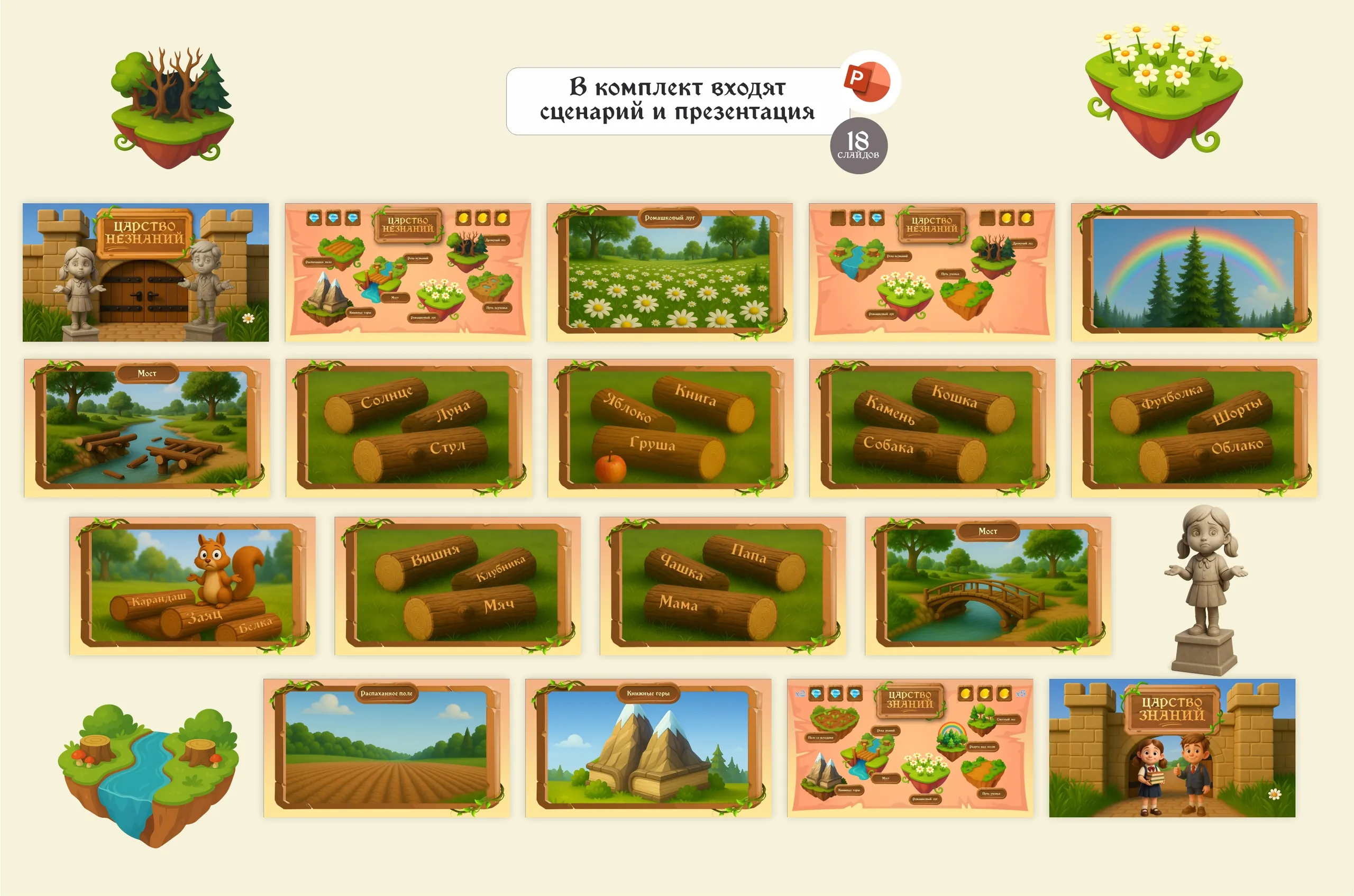 Аля 5+: Ребята, как я рада вас видеть! Меня зовут Аля пять с плюсом. Я знаю всё от А до Я на отлично. А моя страна открыта для всех, кто стремится к знаниям, хочет узнавать что-то новое, учиться чему-то. На воротах моей страны написано ее название. Давайте вместе прочитаем его.