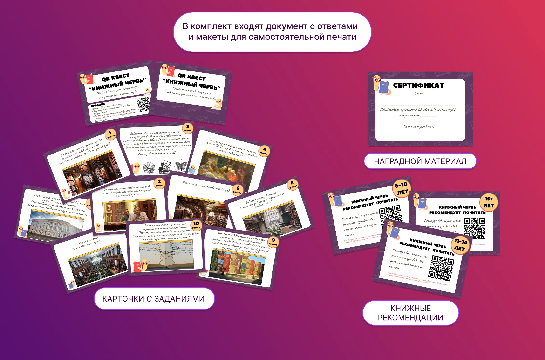 Сертификат о прохождении квеста, рекомендации от Книжного червя для разных возрастных категорий, рекомендательный список книг