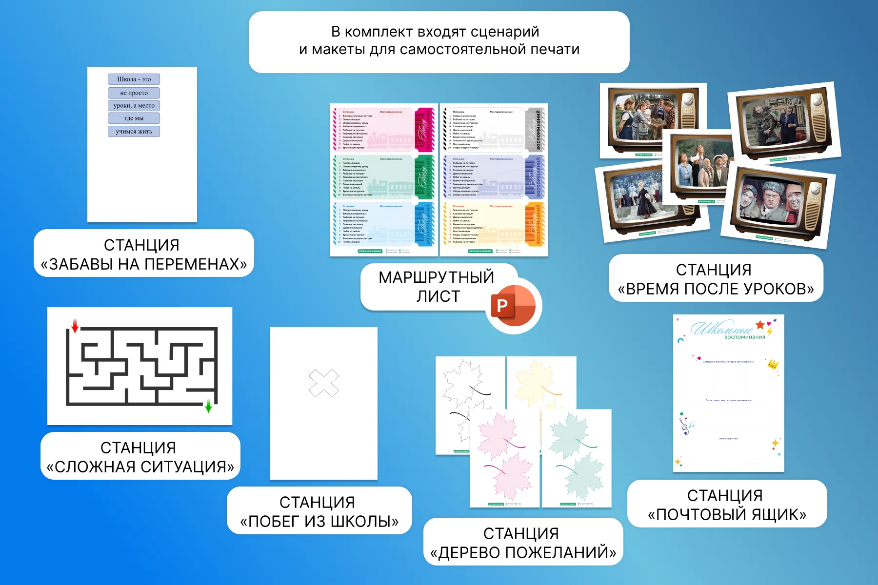 Сюжет: выпускников в актовом зале встречают двое ведущих в костюмах проводников. Каждому выпускнику дают билет определенного цвета, на котором есть номер вагона. Всего цветов 3. В станционной игре 10 станций (остановок), которые должны пройти команды (вагоны). После прохождения все команды возвращаются обратно.