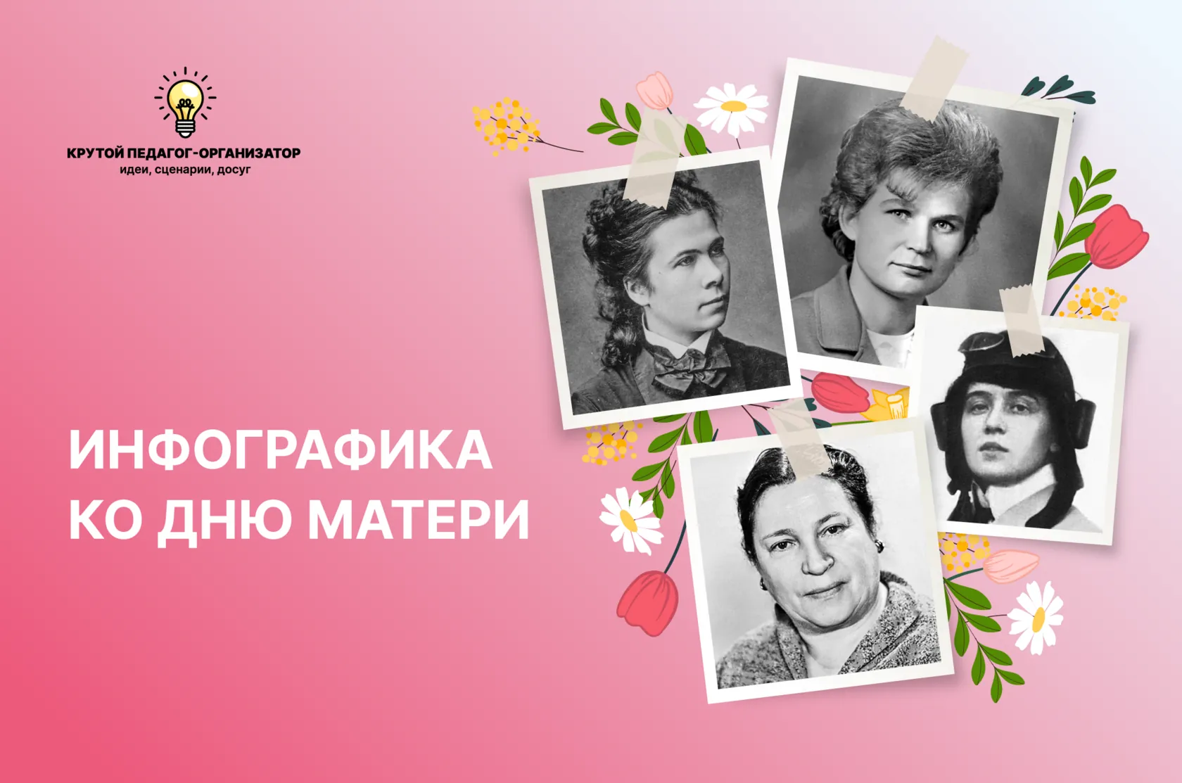 Как Надежда Суслова стала первой женщиной-врачом, а Валентина Терешкова отправилась в космос? Почему Лидию Звереву назвали матерью русской авиации, а Агнию Барто – матерью детской поэзии? Благодаря этой инфографике вопросов у школьников не останется. В папке вы найдёте два комплекта плакатов, описывающих заслуги «Великих матерей» и «Первых женщин» в самых разных сферах: от моды и литературы до медицины и политики. Дизайн представлен в двух вариантах – цветном и чёрно-белом. Такие плакаты позволят оригинально оформить пространство к Дню матери, расширят познания школьников и подчеркнут значение женщины в нашей жизни.