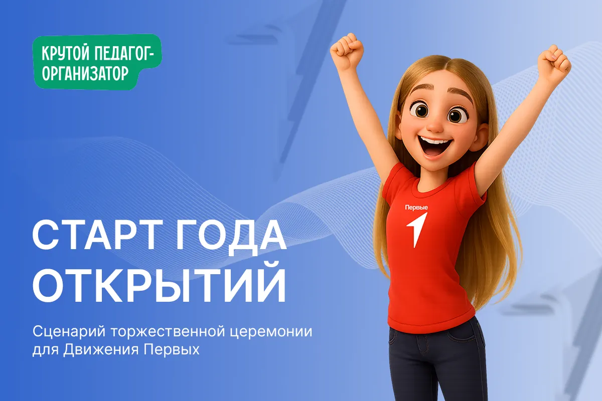 Ведущий 1: Мы рады объявить, что 2026 год в нашей школе, в рамках Всероссийского Движения Первых, объявляется ГОДОМ ОТКРЫТИЙ!