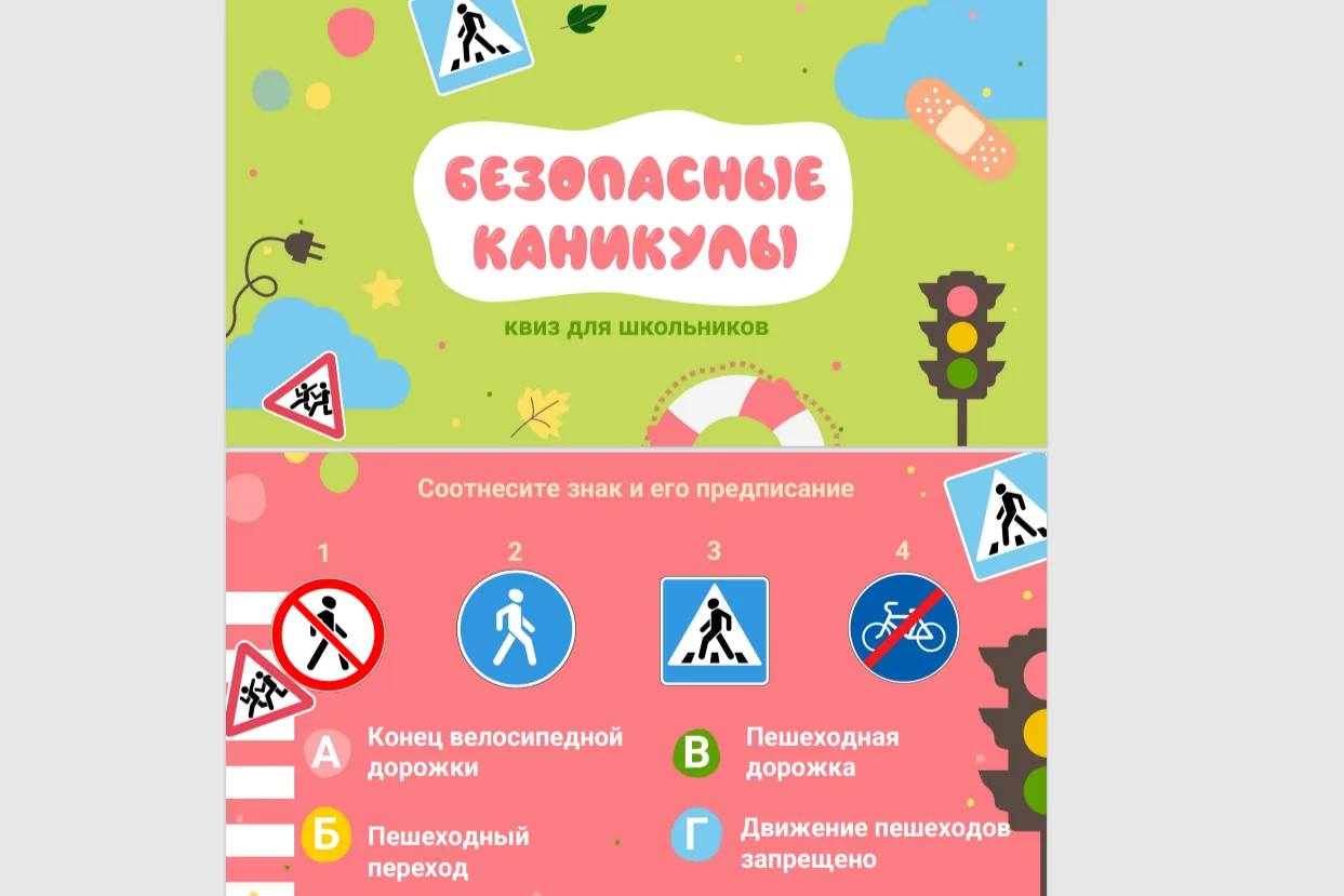 Любые правила, особенно во время каникул, навевают скуку и тоску? А вот и нет! С помощью мультипликационных героев повторение правил поведения превратится в увлекательное занятие! Лес, дом, дорога, вода - все эти места станут абсолютно безопасными для детей, которые примут участие в квизе.